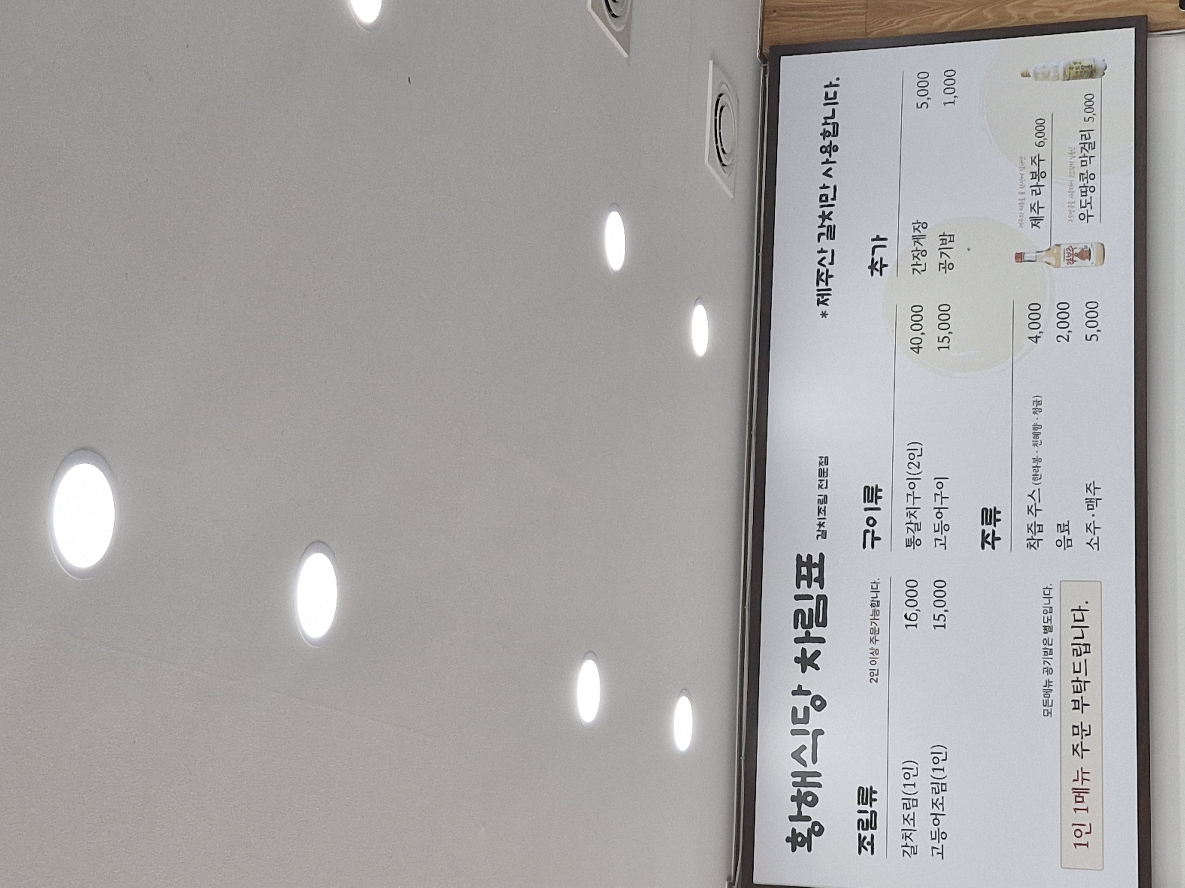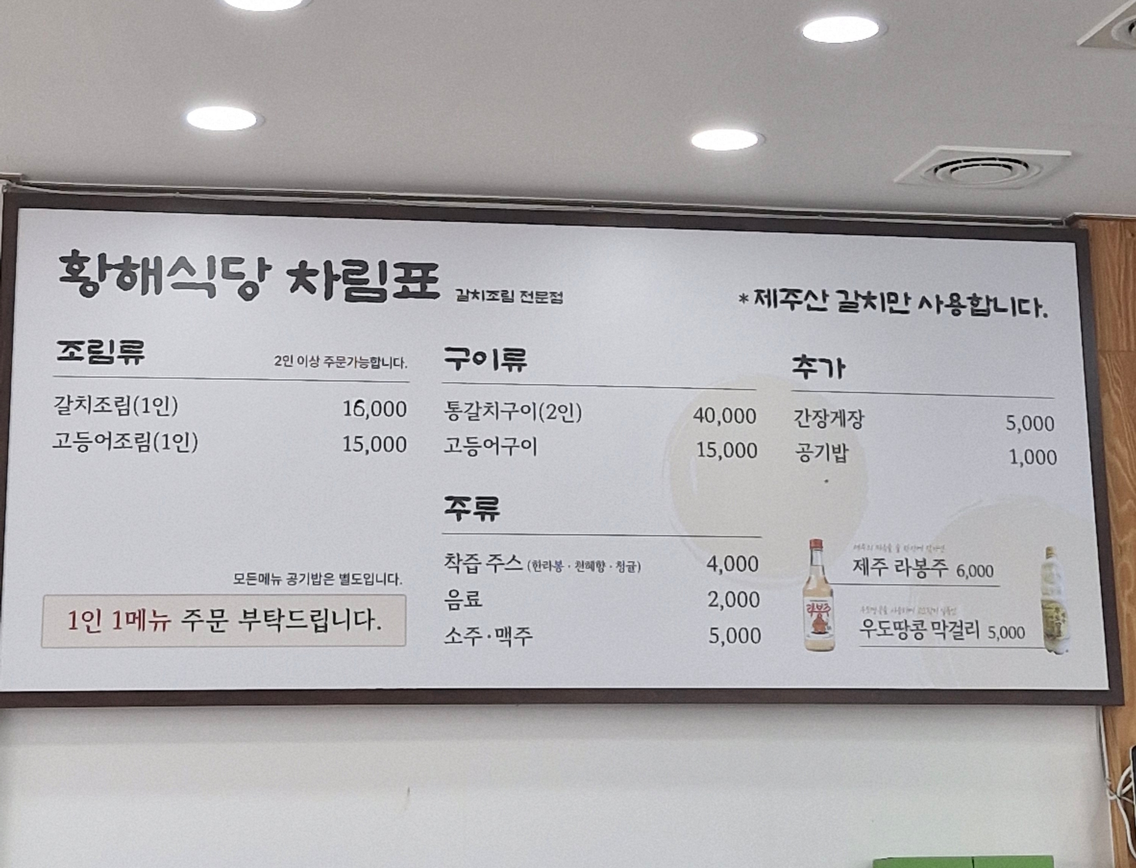 제주공항 인근 갈치요리 '황해식당' 내부, 메뉴