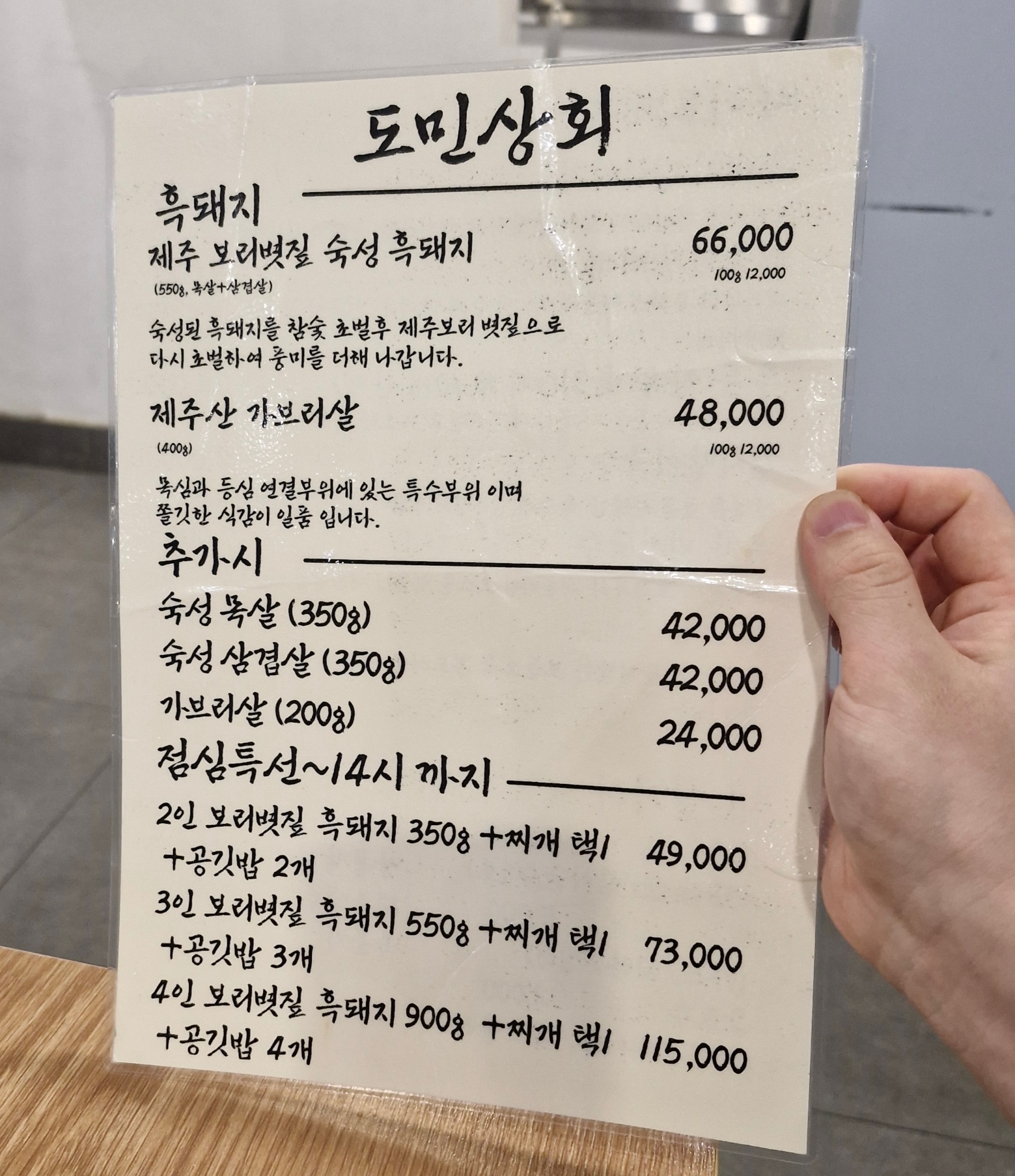 제주한림협재흑돼지 도민상회본점 메뉴입니다