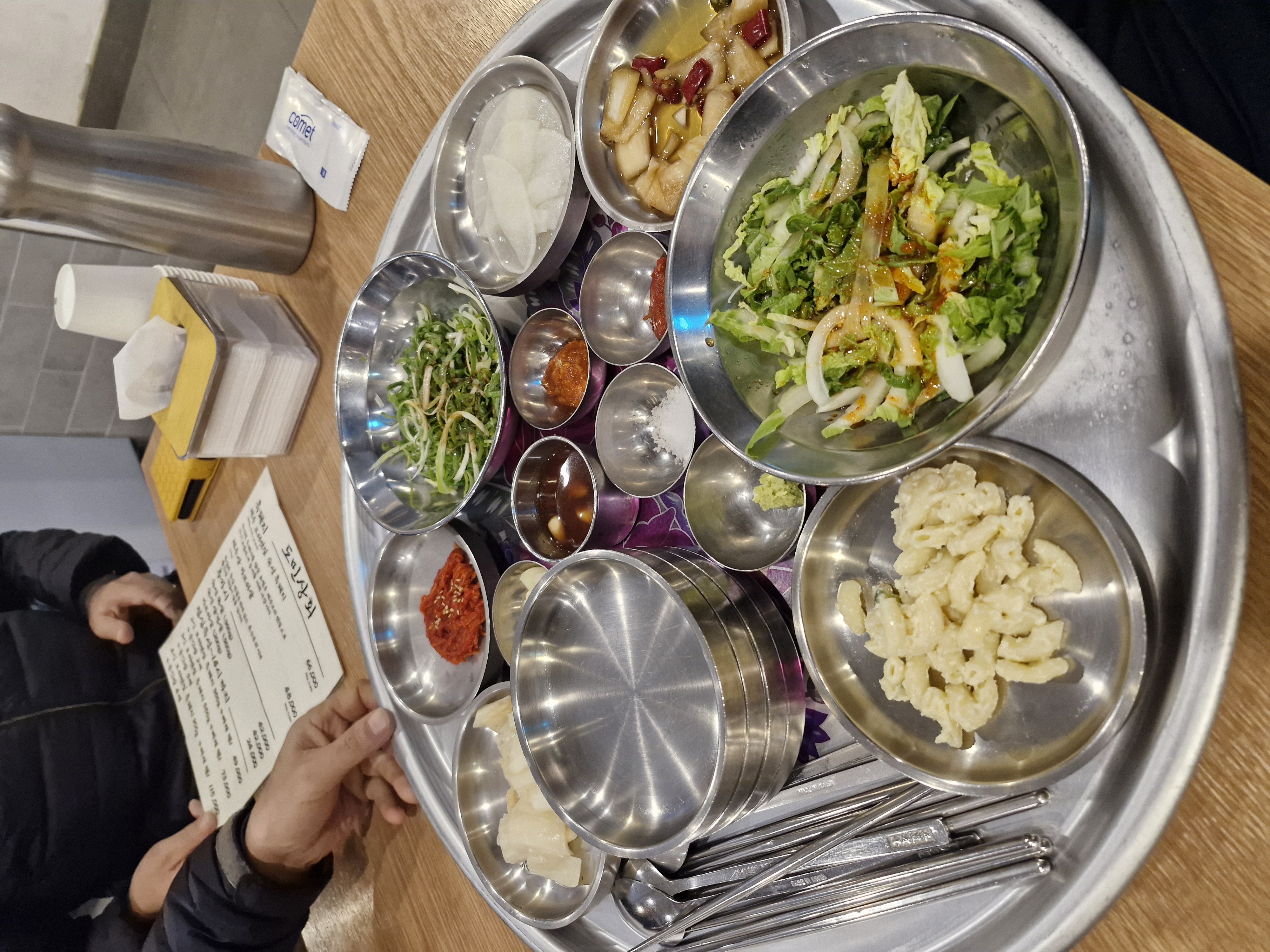 식전에 입맛 돌기 좋은 마카로니와 각종 겉절이가 나옵니다