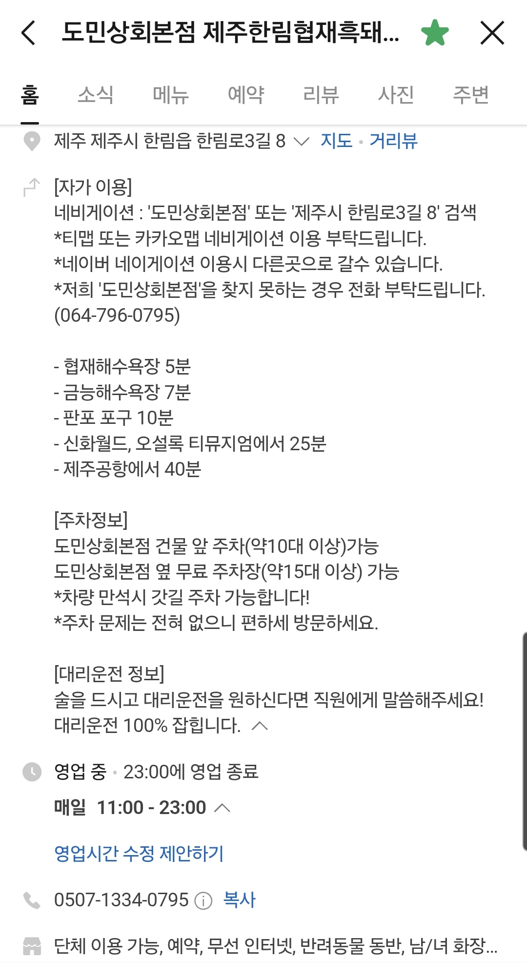 협재해수욕장 맛집 도민상회본점 제주한림협재흑돼지는 매일 오전 11시부터 오후 11시까지 영업합니다