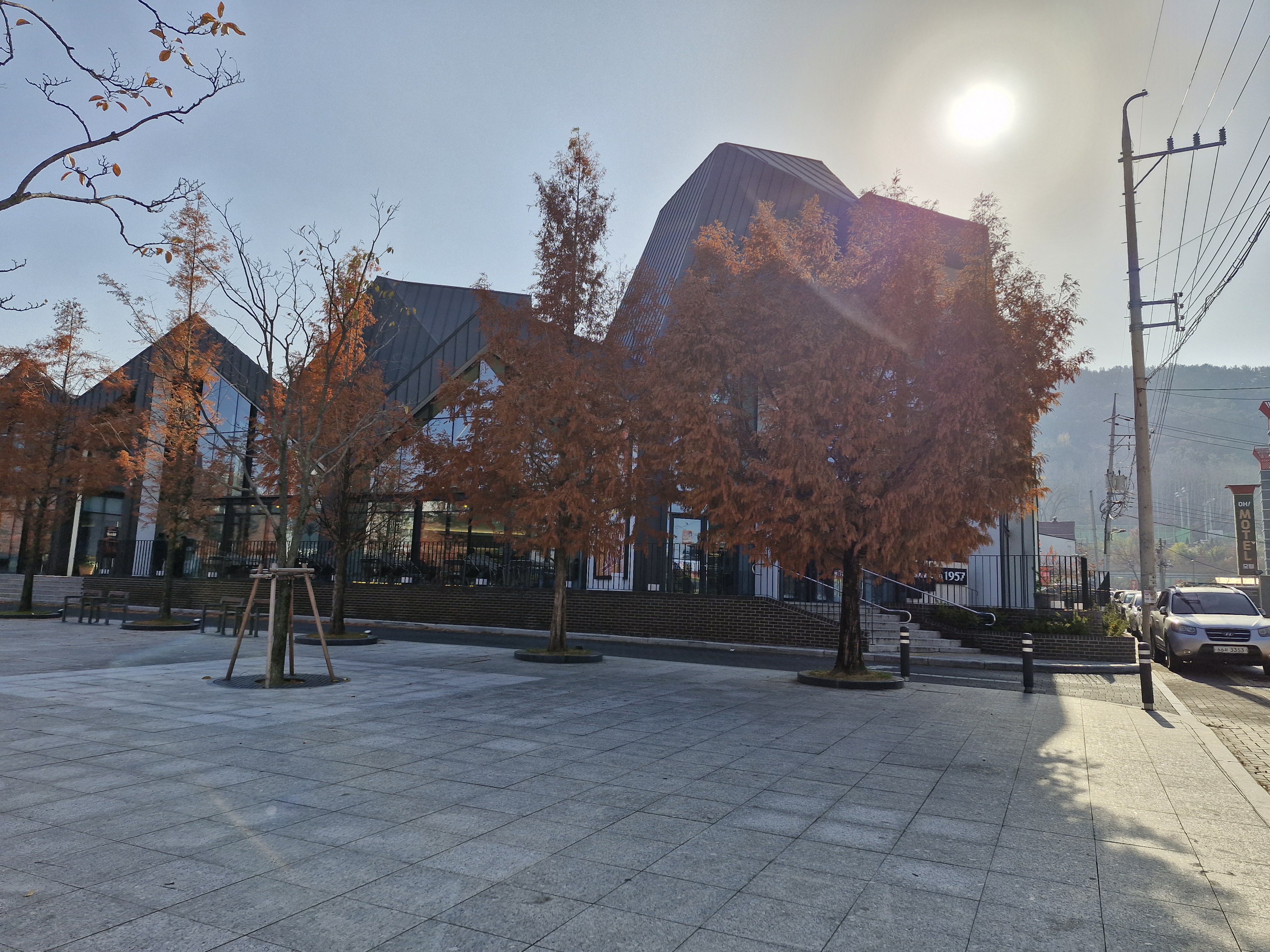 수성못 대형카페 삼송1957은 이렇게 광장을 마주하고 있어서 외관 자체도 이국적인 느낌을 자아냅니다