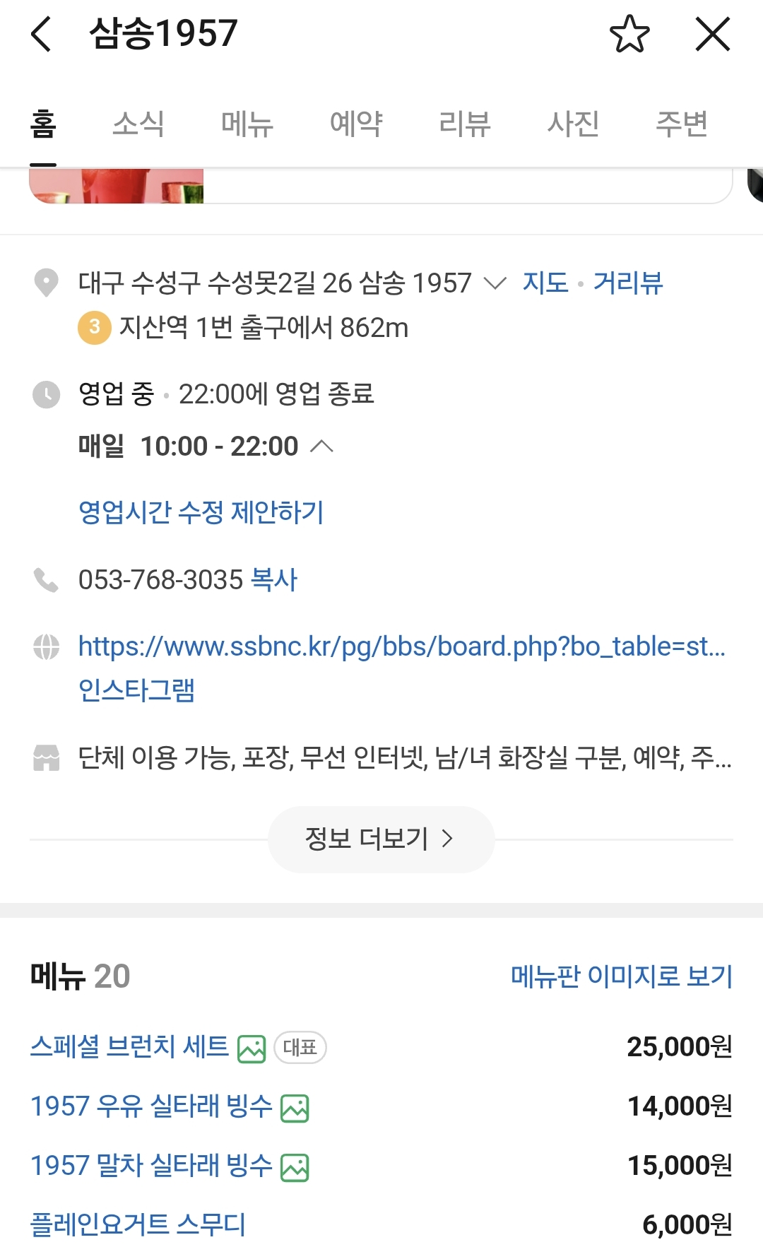 📍수성못 무료주차 대형 베이커리 카페 '삼송1957' 메뉴