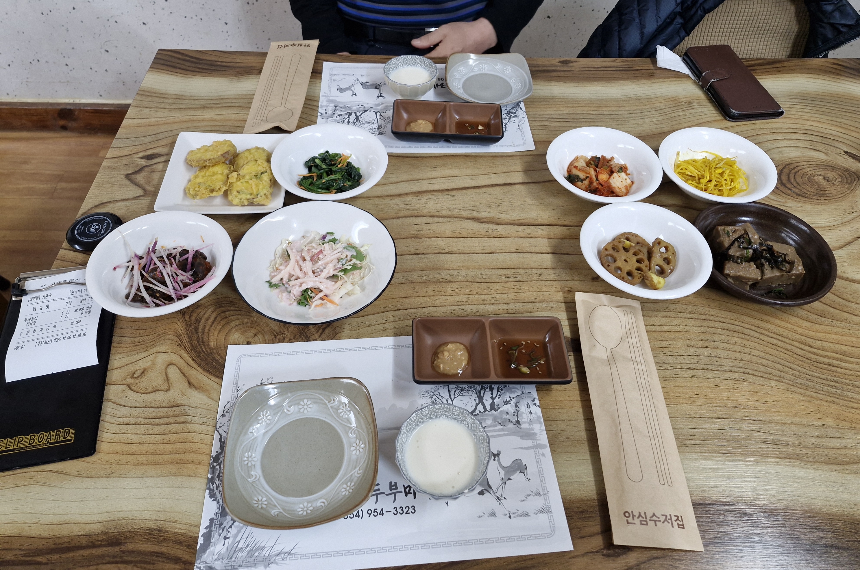 두부보쌈인 두레정식을 시킨 후 상차림입니다