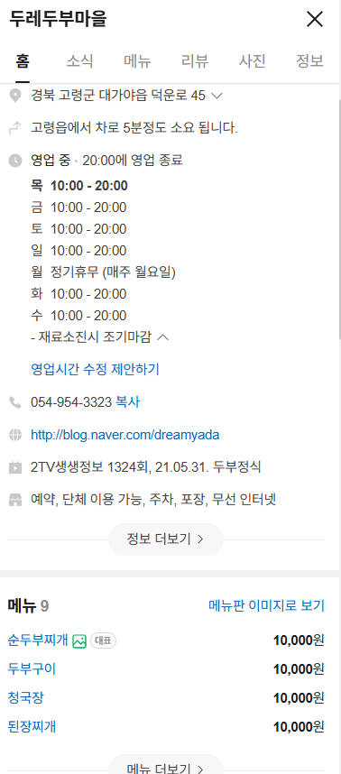 📍고령 현지인 로컬 맛집 '두레두부마을' 주차, 위치