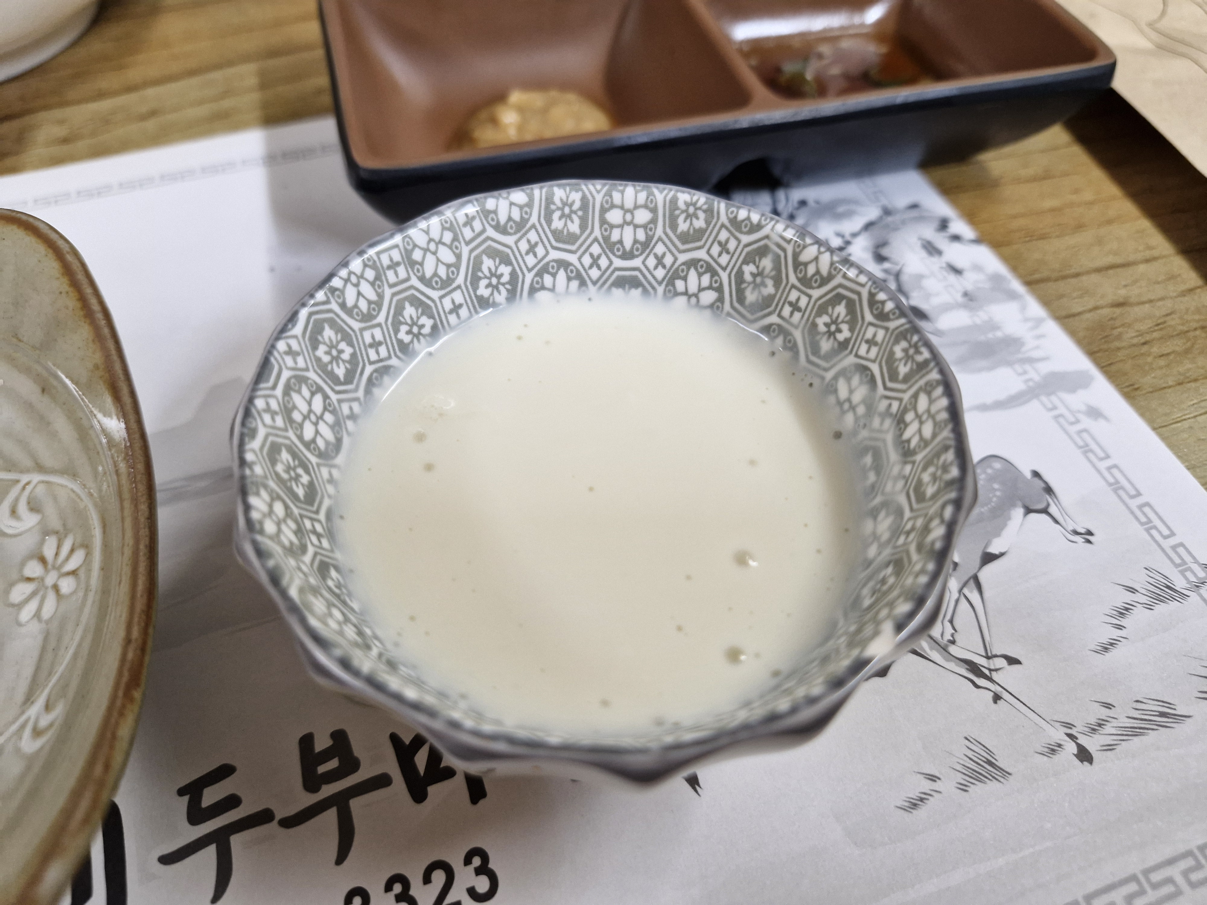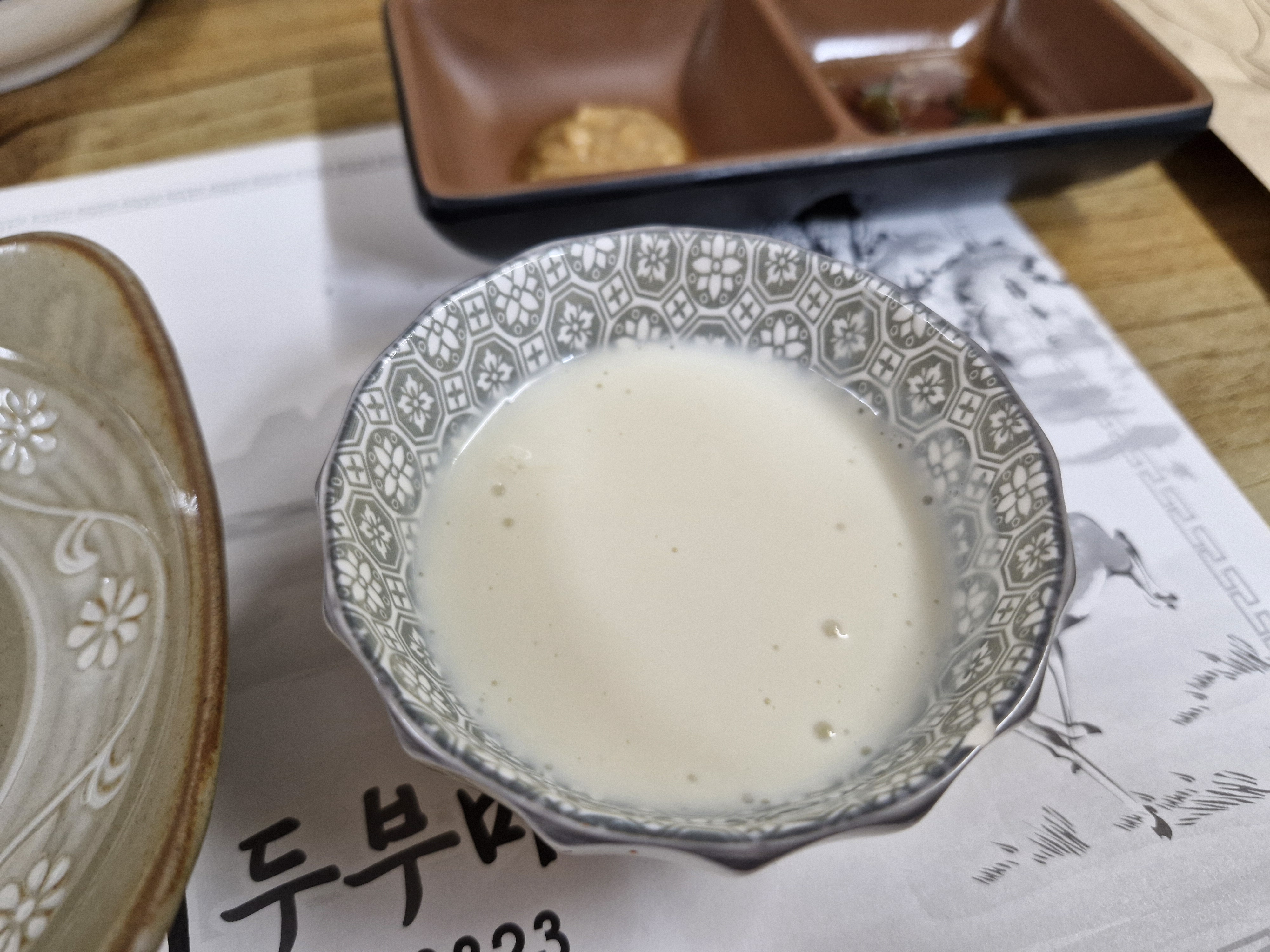 고령 두부맛집 두레두부마을에서 식전에 나오는 따끈한 콩물입니다