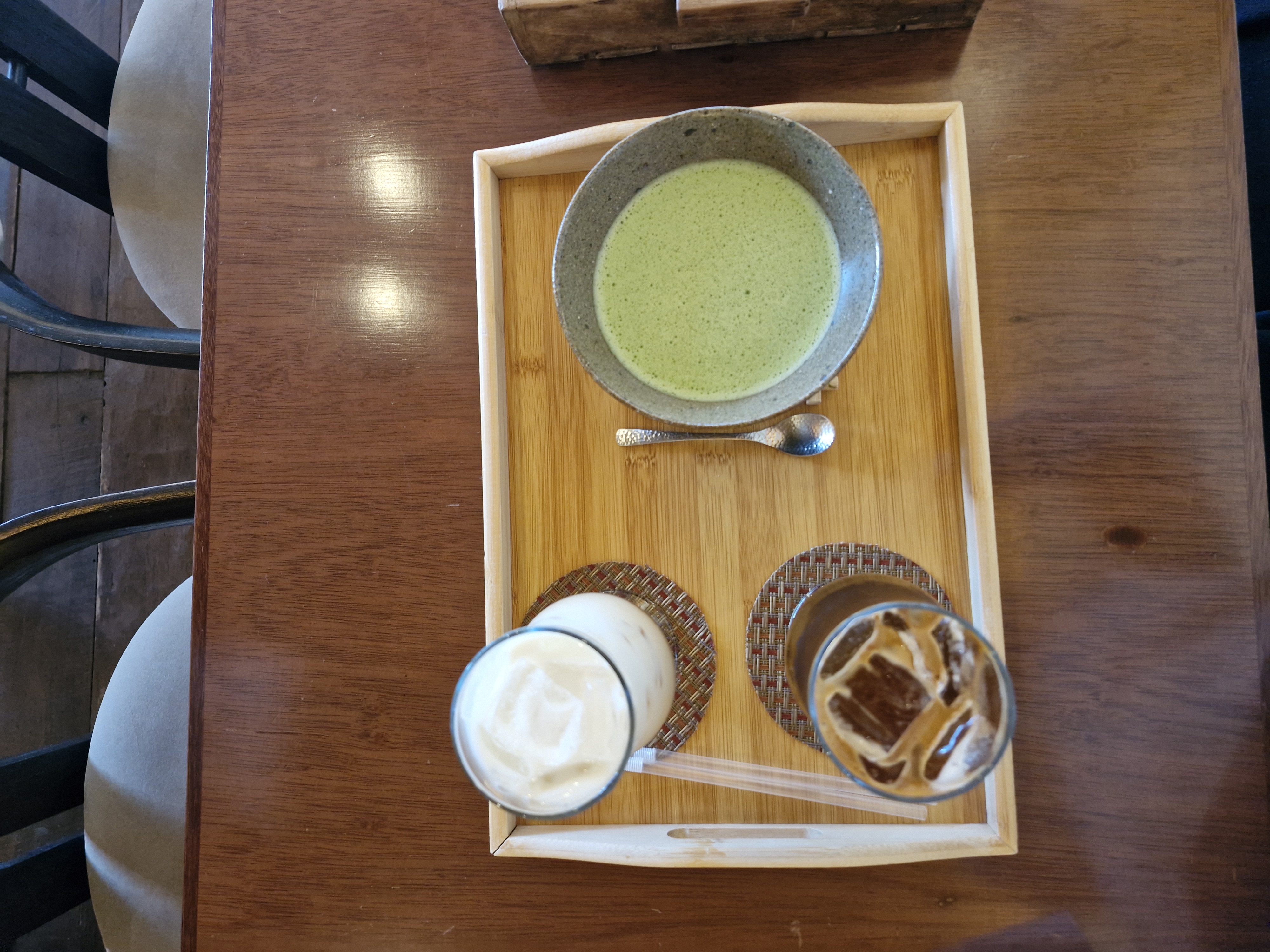 말차 밑에 코스터(받침대)도 전통적인 일본 음료 식기 느낌을 살려주어서