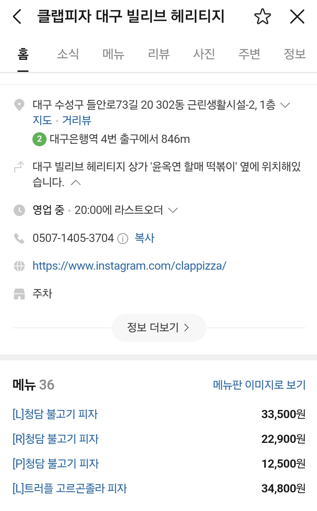 📍 신천시장 혼밥추천, 수성4가 다운타우너/클랩피자 대구빌리브헤리티지_메뉴