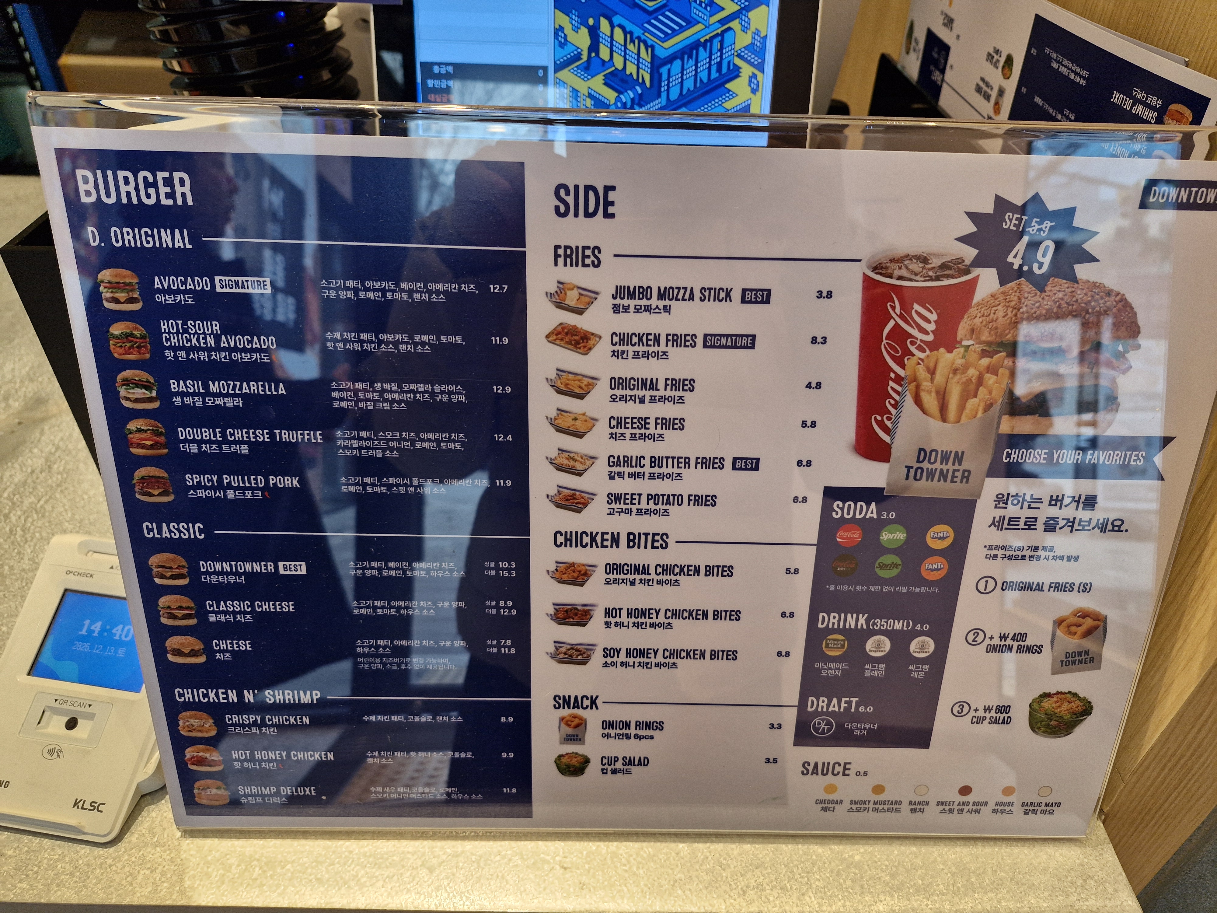 대구 수성구 대구은행역 인근 혼밥하기 좋은 다운타우너 수제버거와 클랩피자 메뉴는 아래와 같습니다