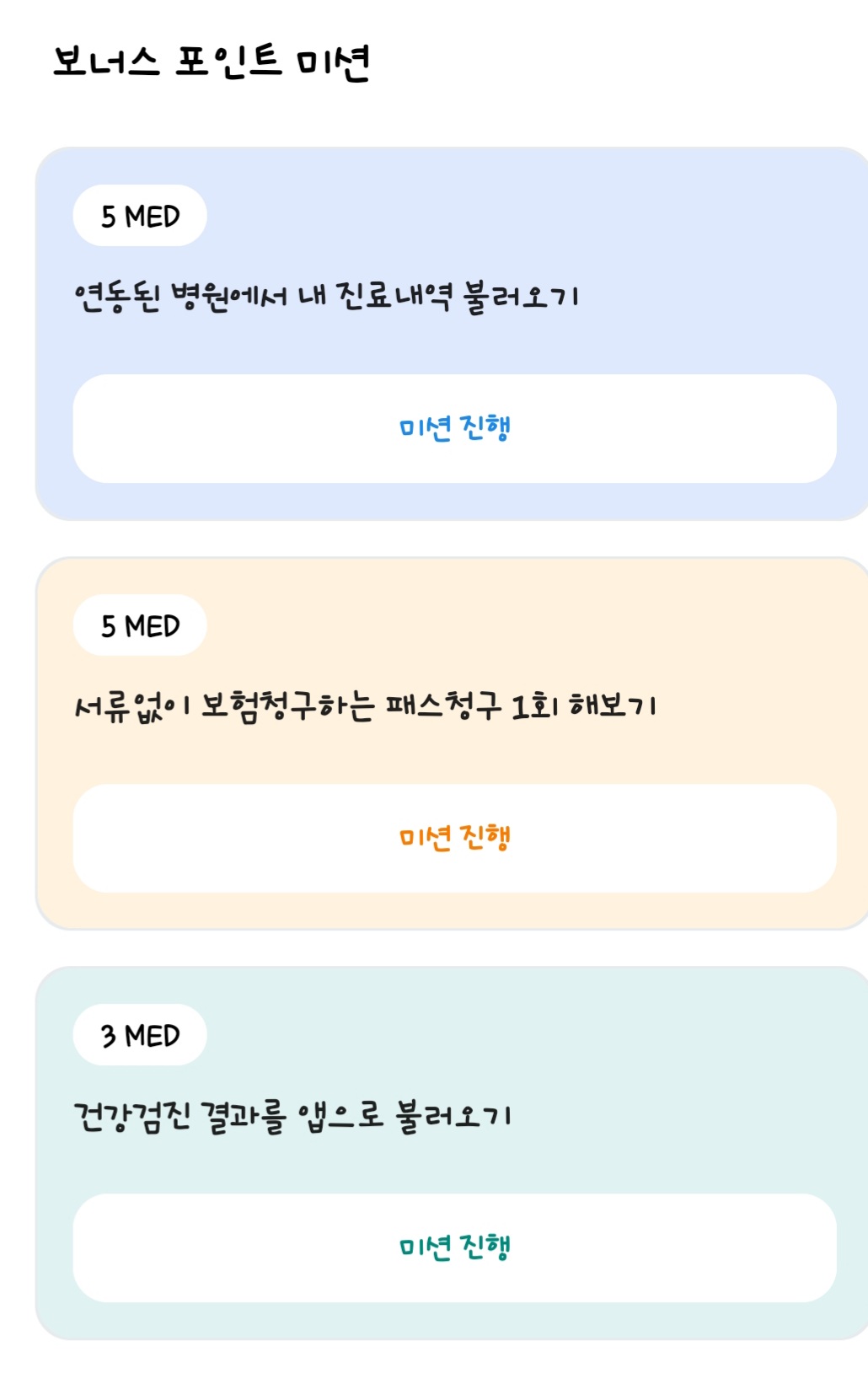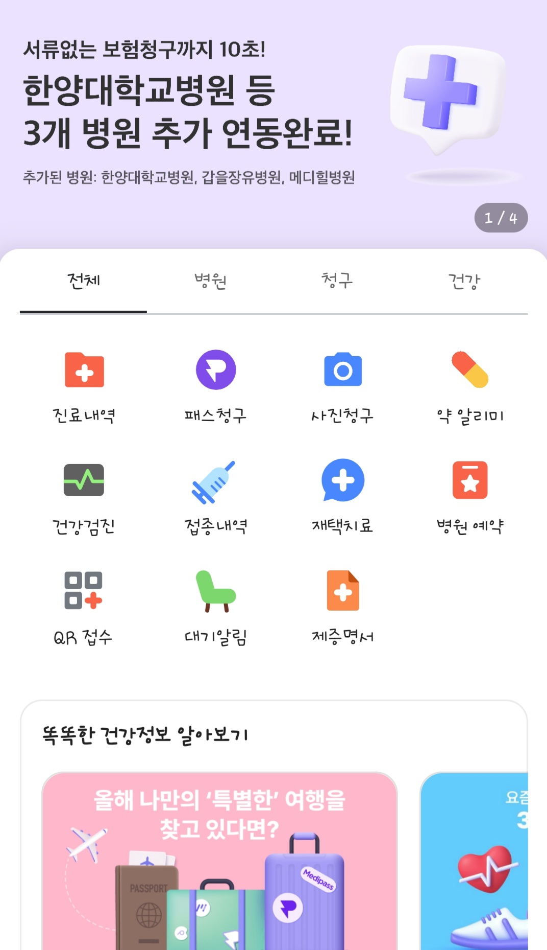 원래 의료비 청구, 보험료 청구, 건강정보 등을 하는 의료 앱인데