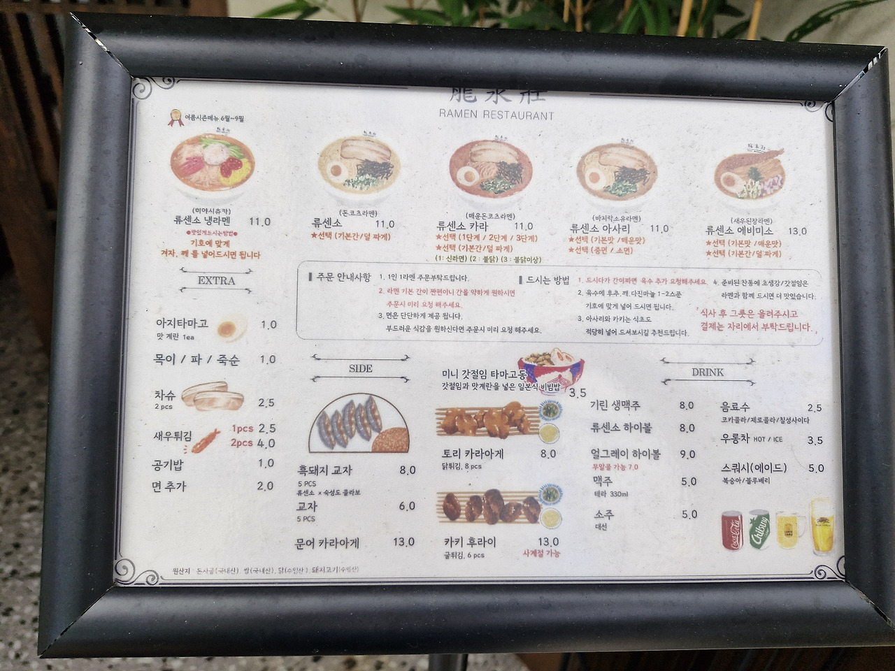 부산 광안리 일본라멘 맛집 '류센소 광안직영점' 메뉴