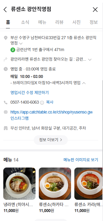 📍부산 광안리 일본라멘 맛집 '류센소 광안직영점' 영업시간