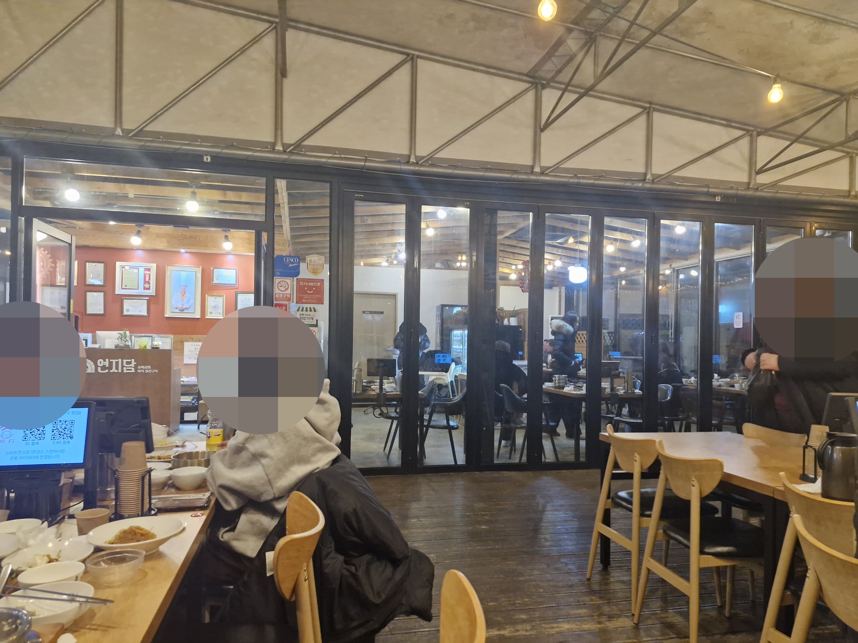 조금 더 따뜻하고 편안하게 식사하고 싶은 분들은 안쪽 테이블 이용하시고요,