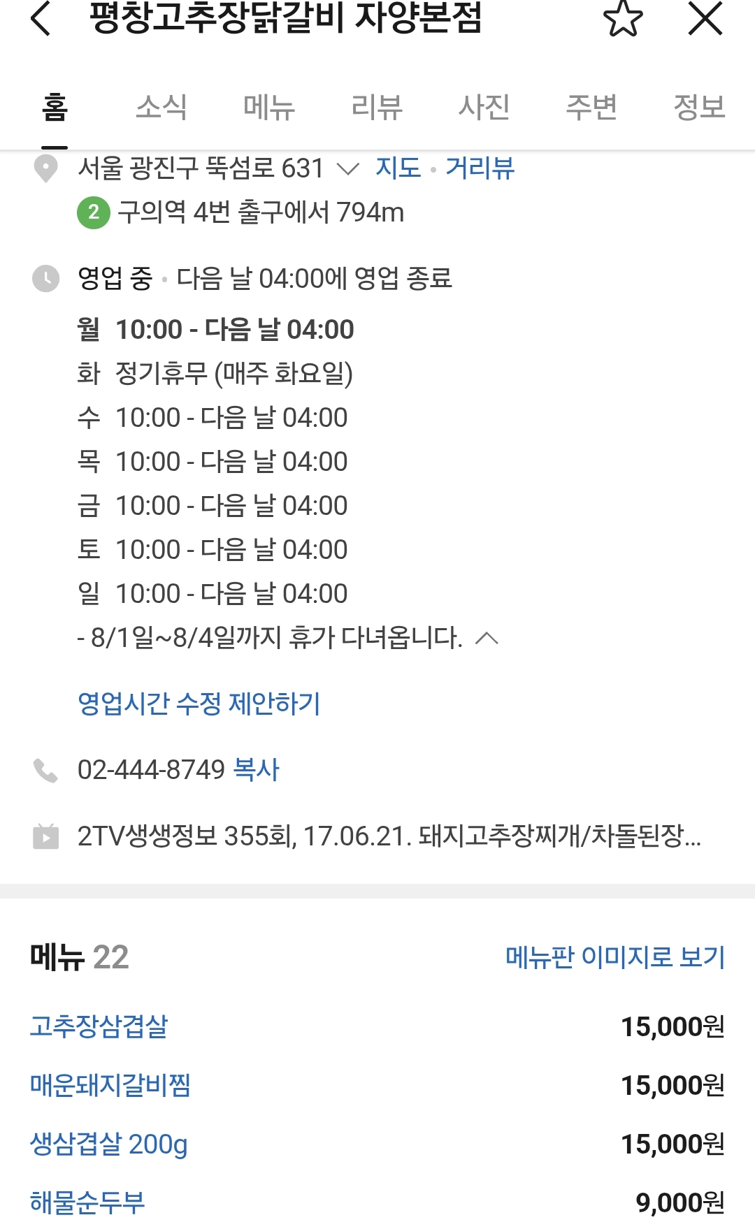 구의역 건대입구역 맛집인 평창고추장닭갈비는 자양동 동네 안에 자리하고 있습니다