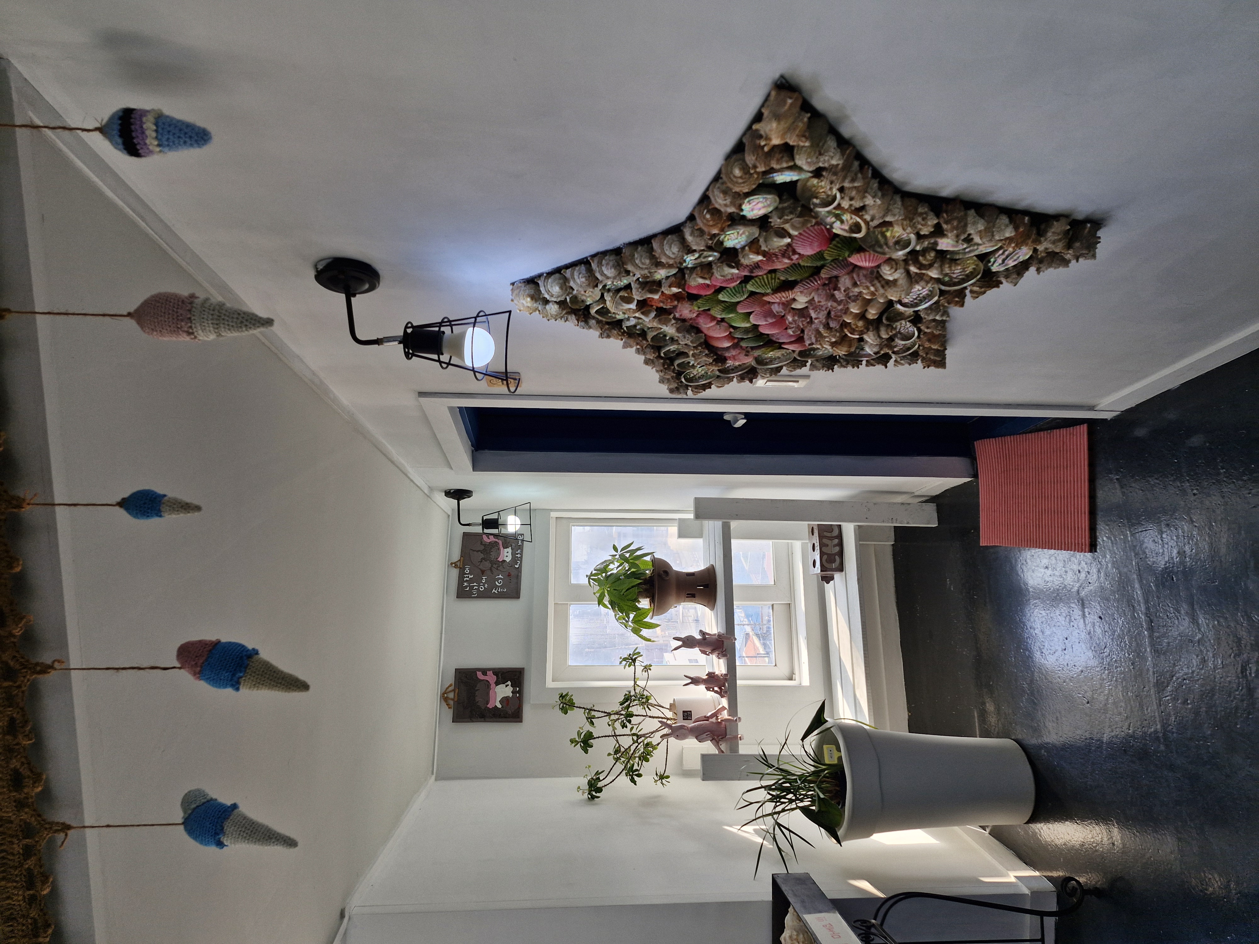 벽면에 전복 등 조개 장식 만들어놓은 장식이 있는 게 너무 귀엽습니다