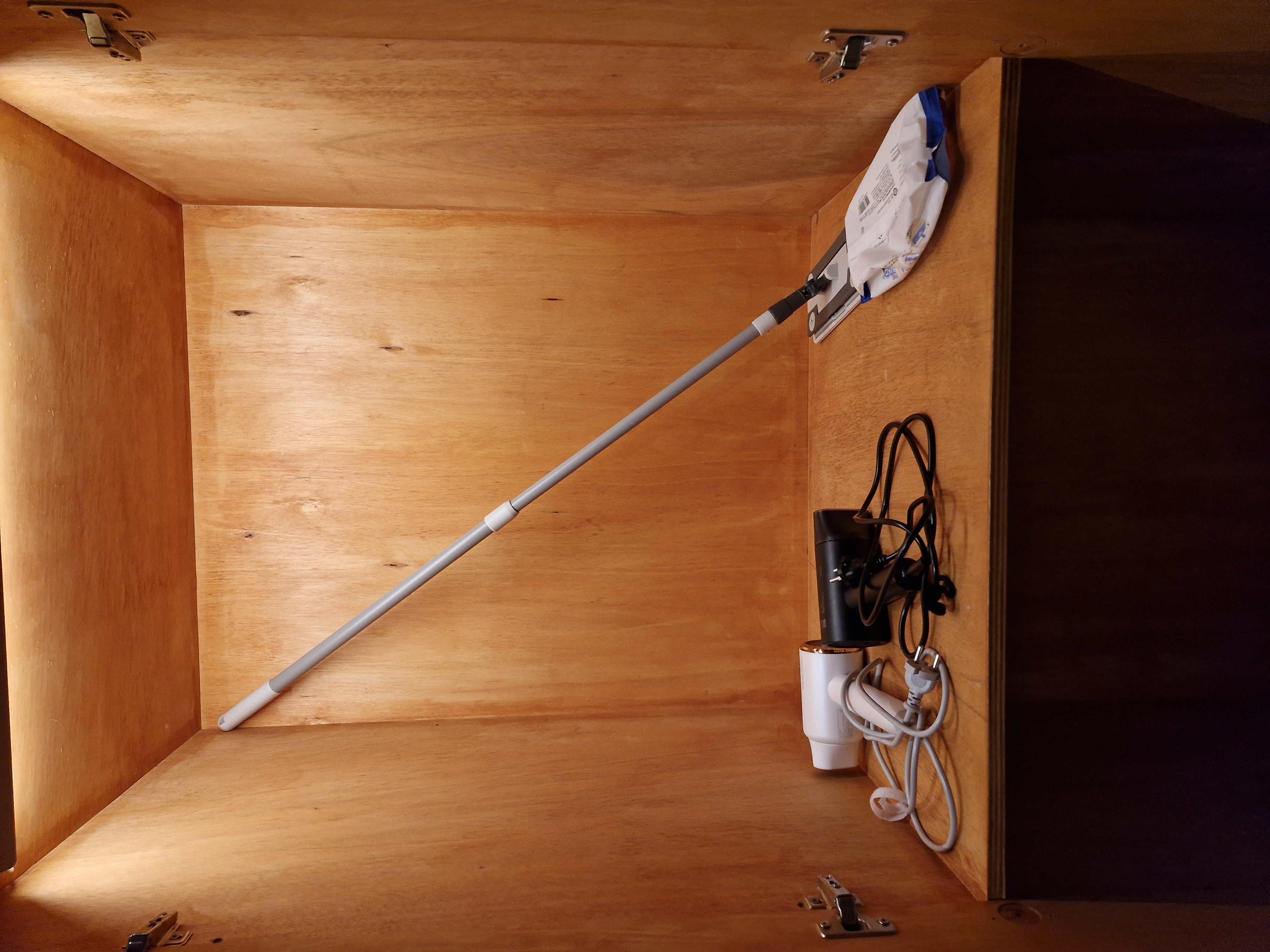 배양장스테이 큰 창이 있는 안방의 벽장 내 다양한 물품들입니다