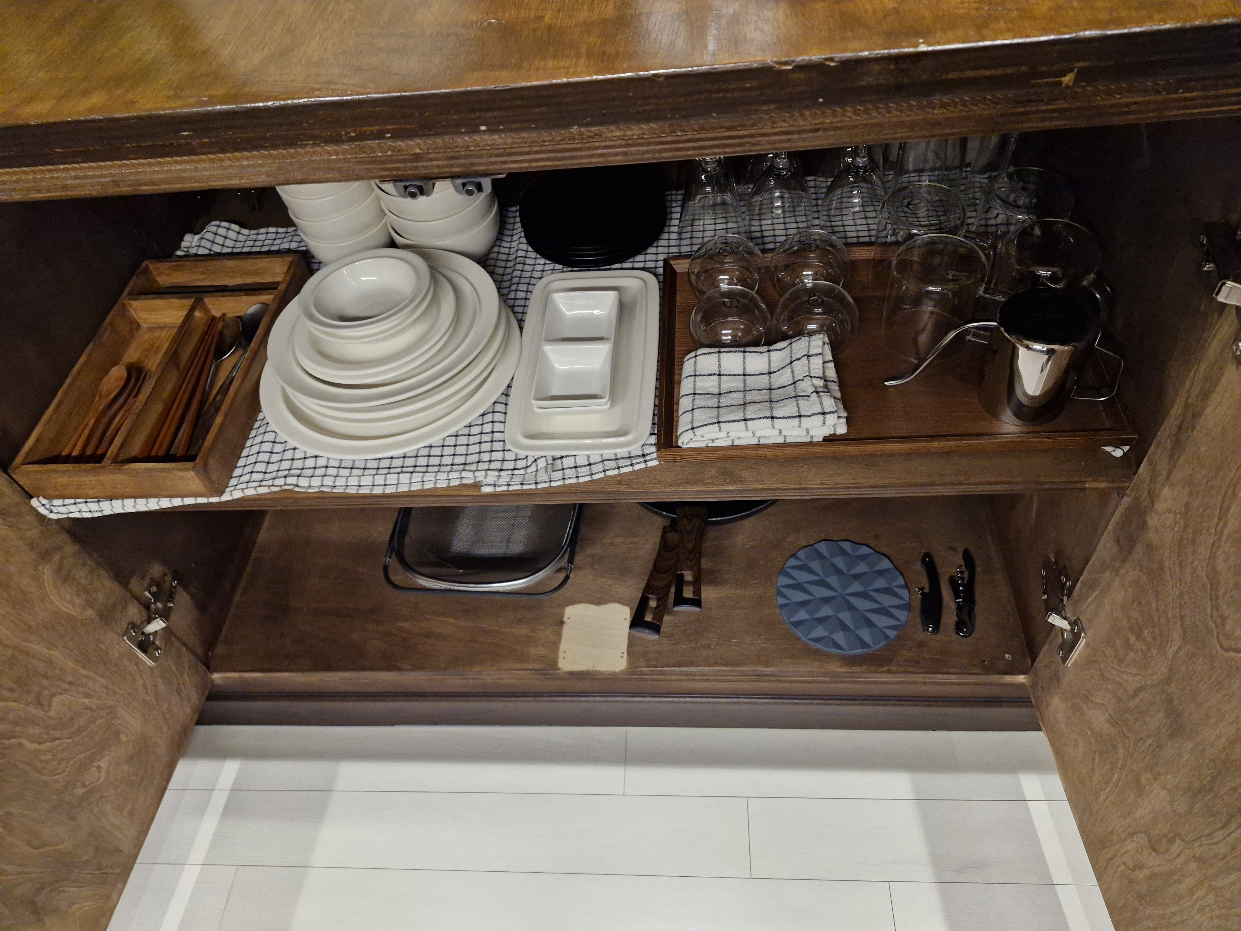통영 배양장스테이의 각종 식기입니다