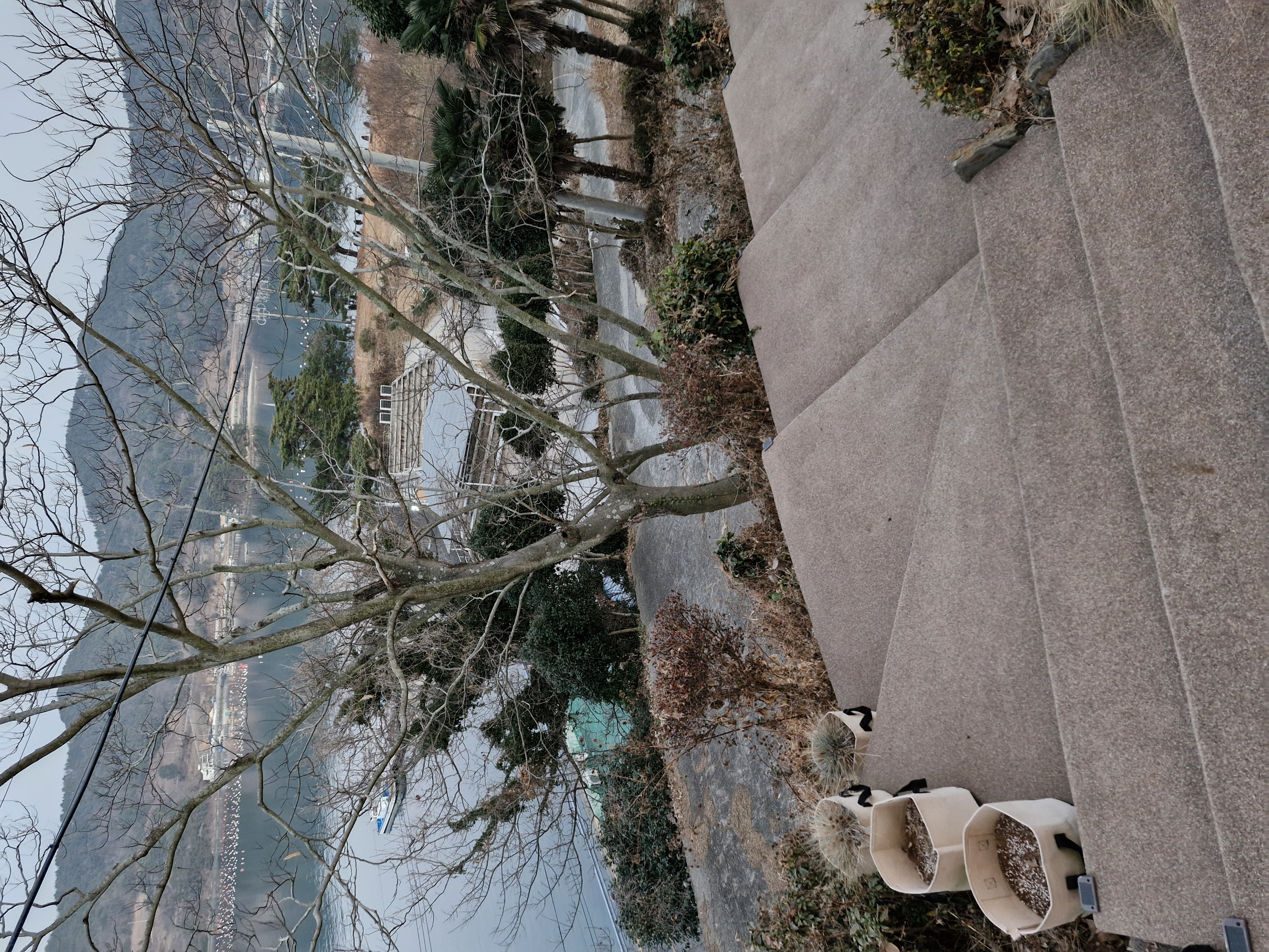 통영 숙소로 추천하는 배양장스테이는 주차장에 차를 대고 이 계단을 걸어 올라와야 합니다