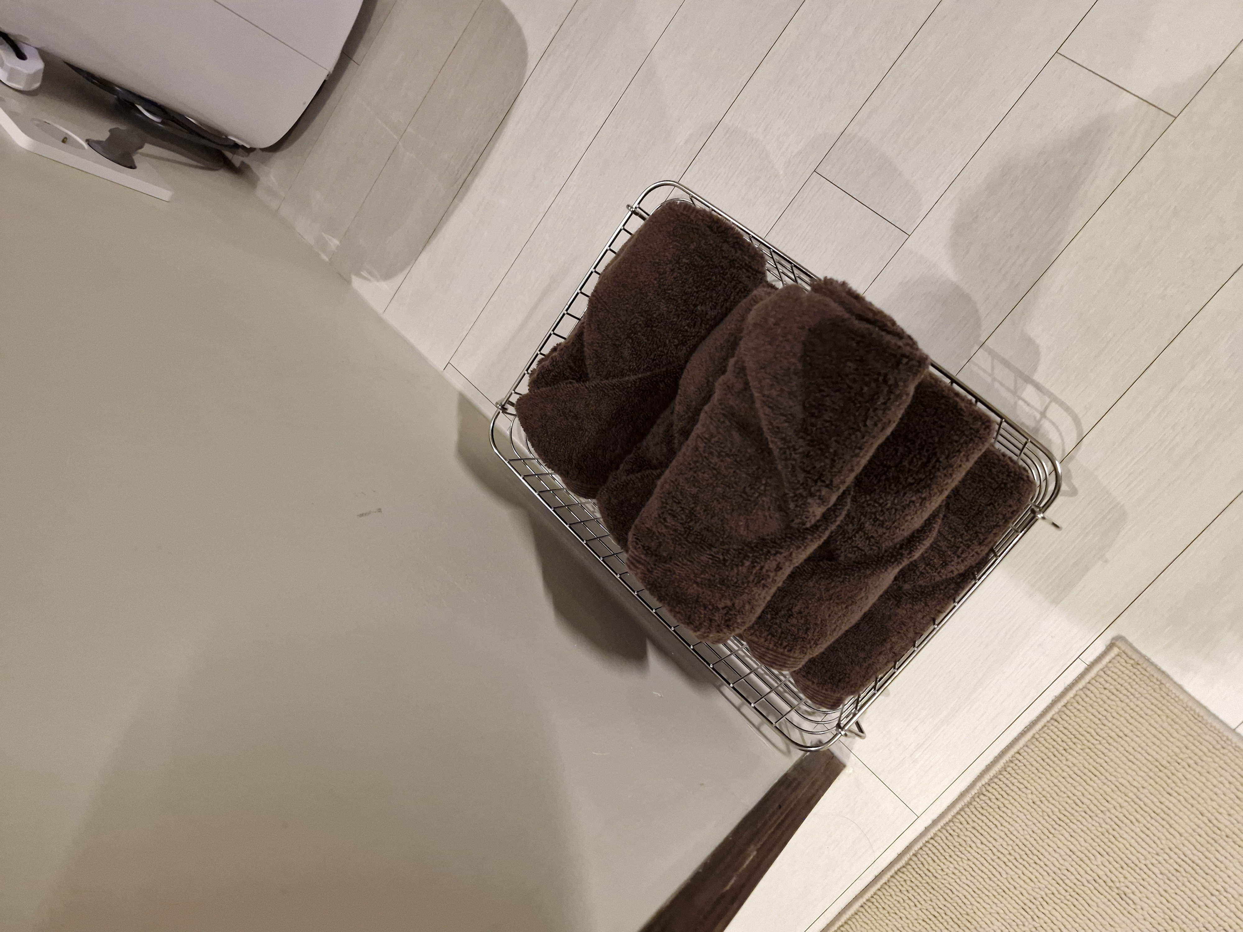 배양장스테이 수건은 이렇게 욕실 앞 바구니에 넉넉하게 담겨 있습니다