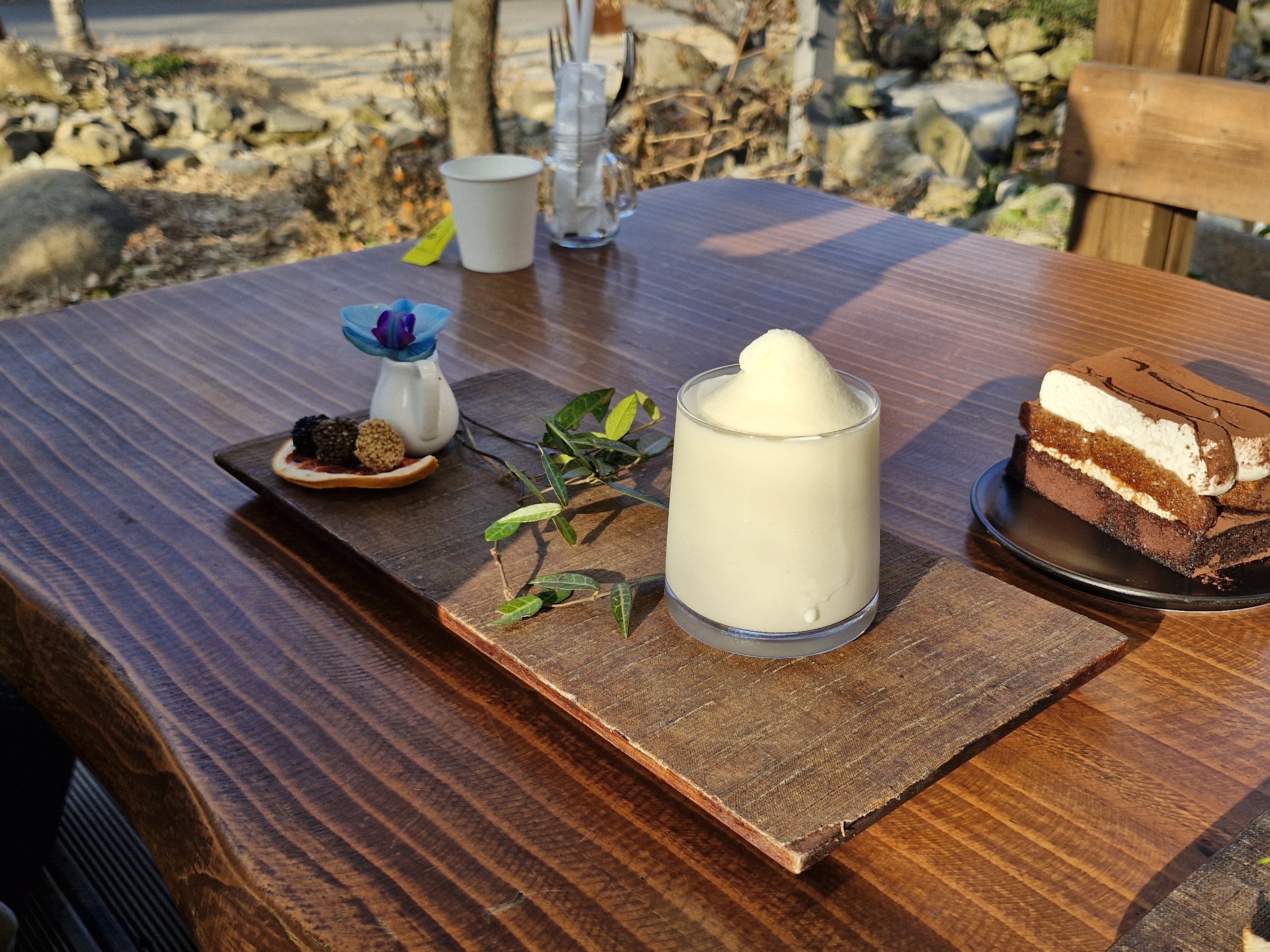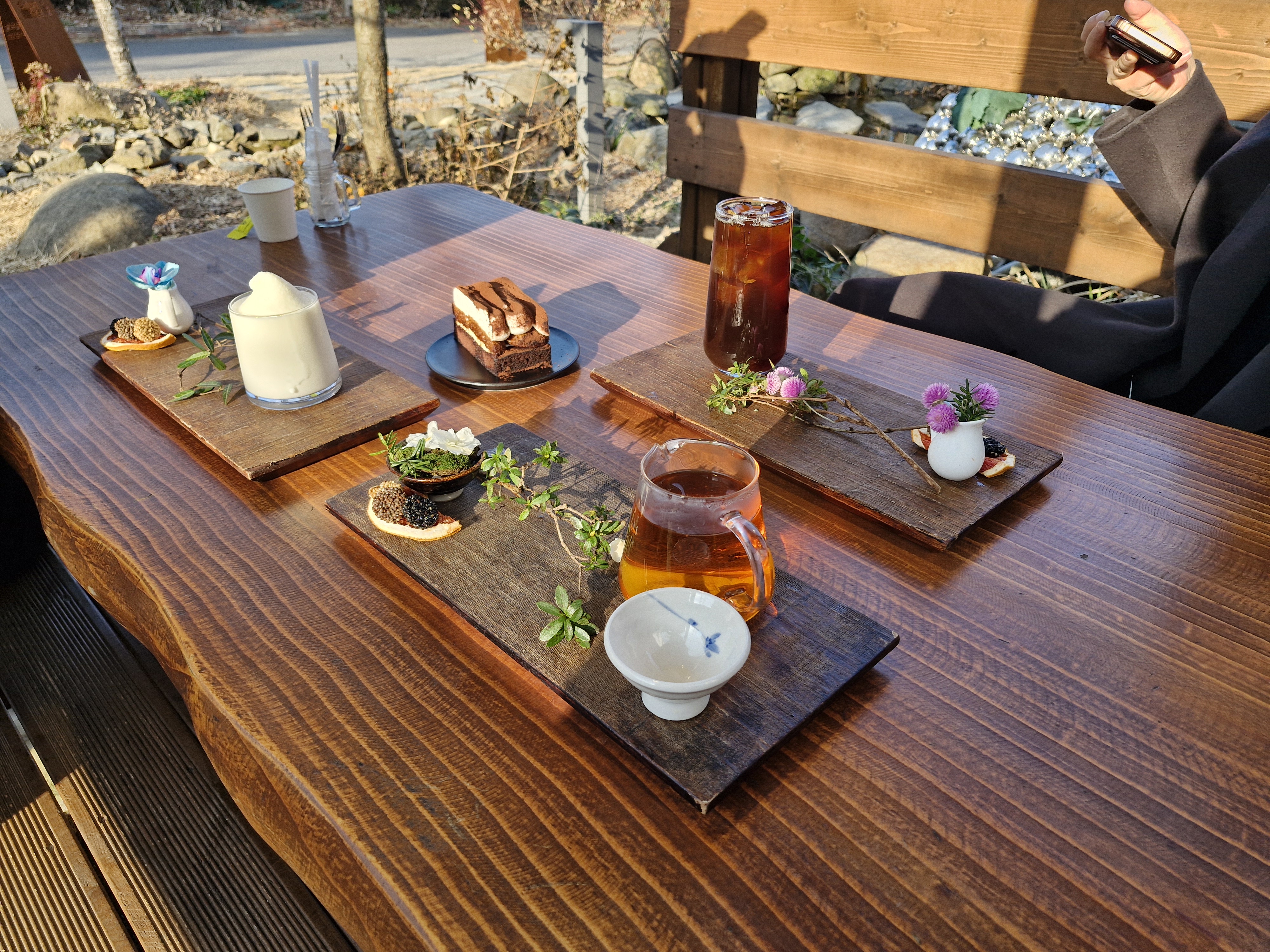 이렇게 샘물이 졸졸 흐르는 야외에서 차를 마시는 것은 처음이었습니다