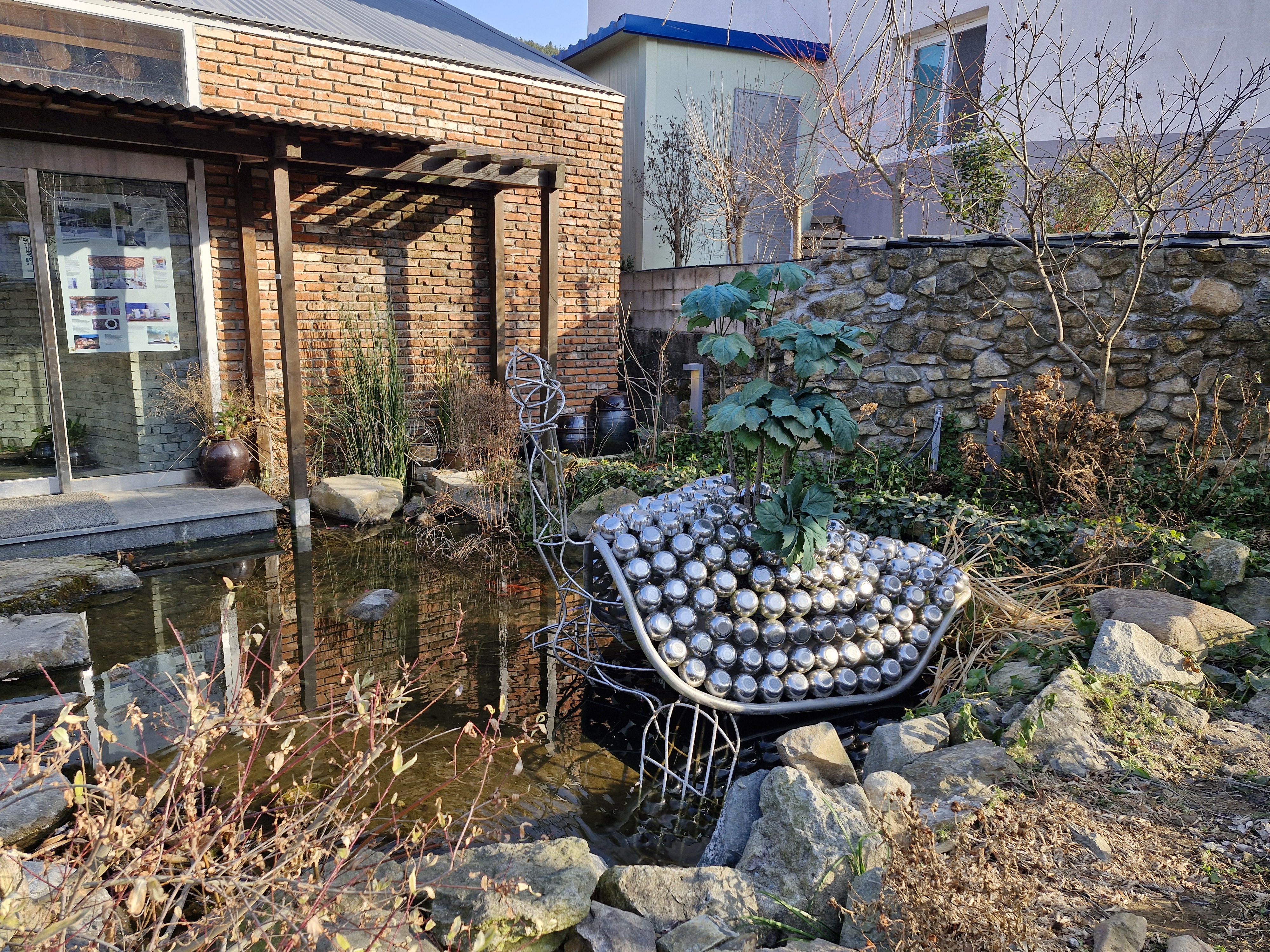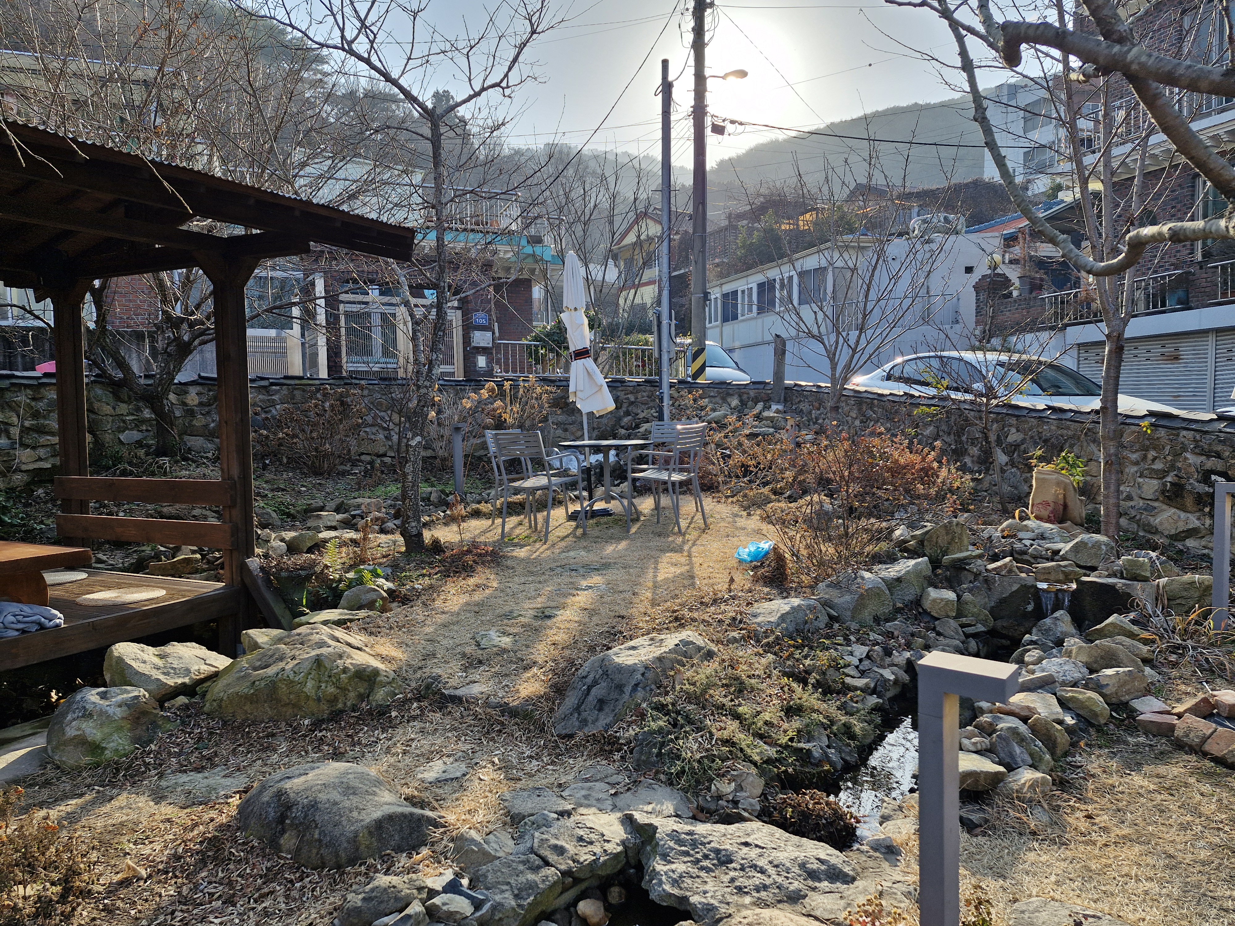 가게 바로 앞으로 정자와 작은 샘이 있고, 돌다리도 있어요
