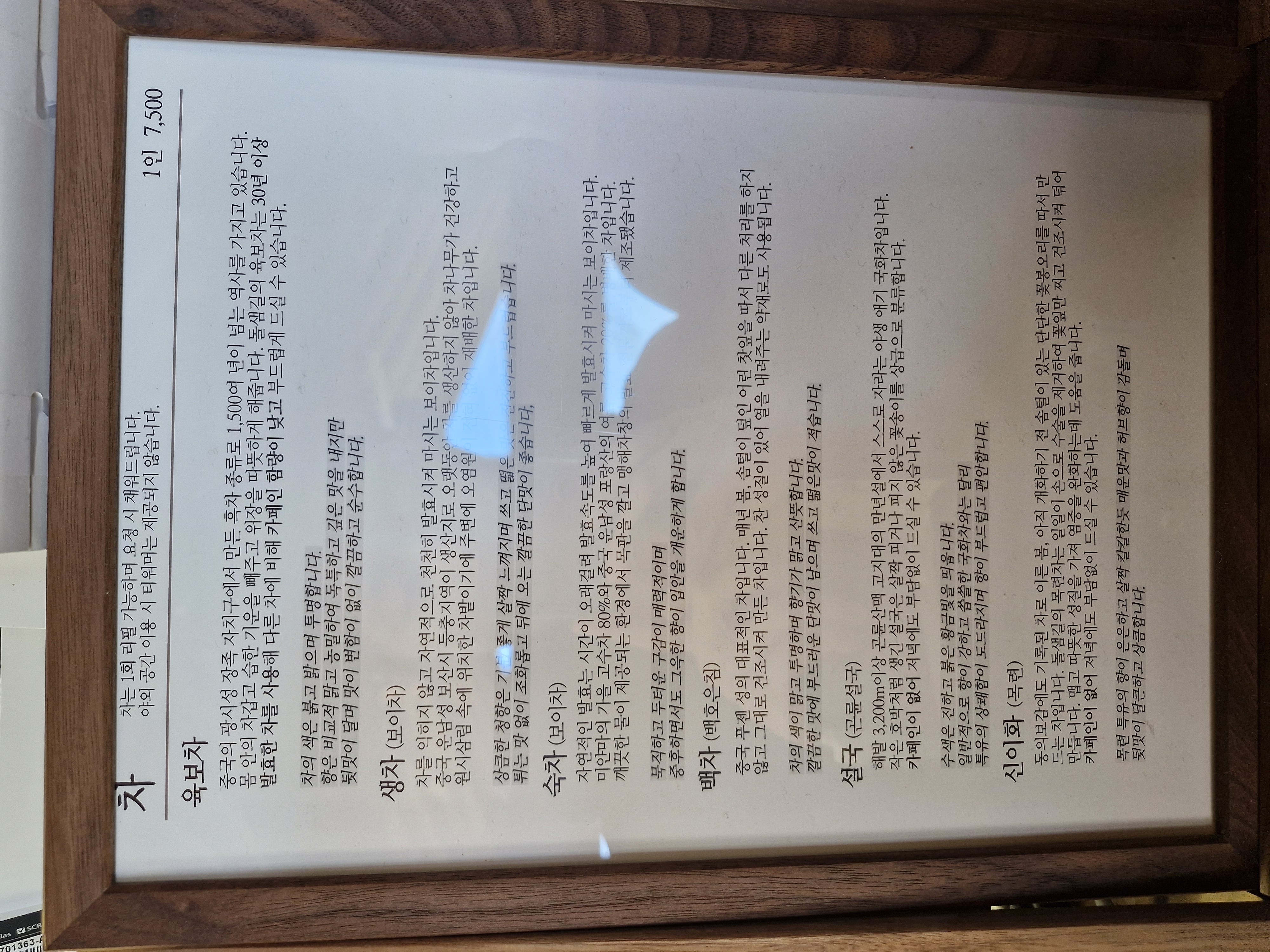 한국적이고 동양적인 분위기가 멋진 장소인 만큼, 차 메뉴가 다양해서 특색이 있습니다