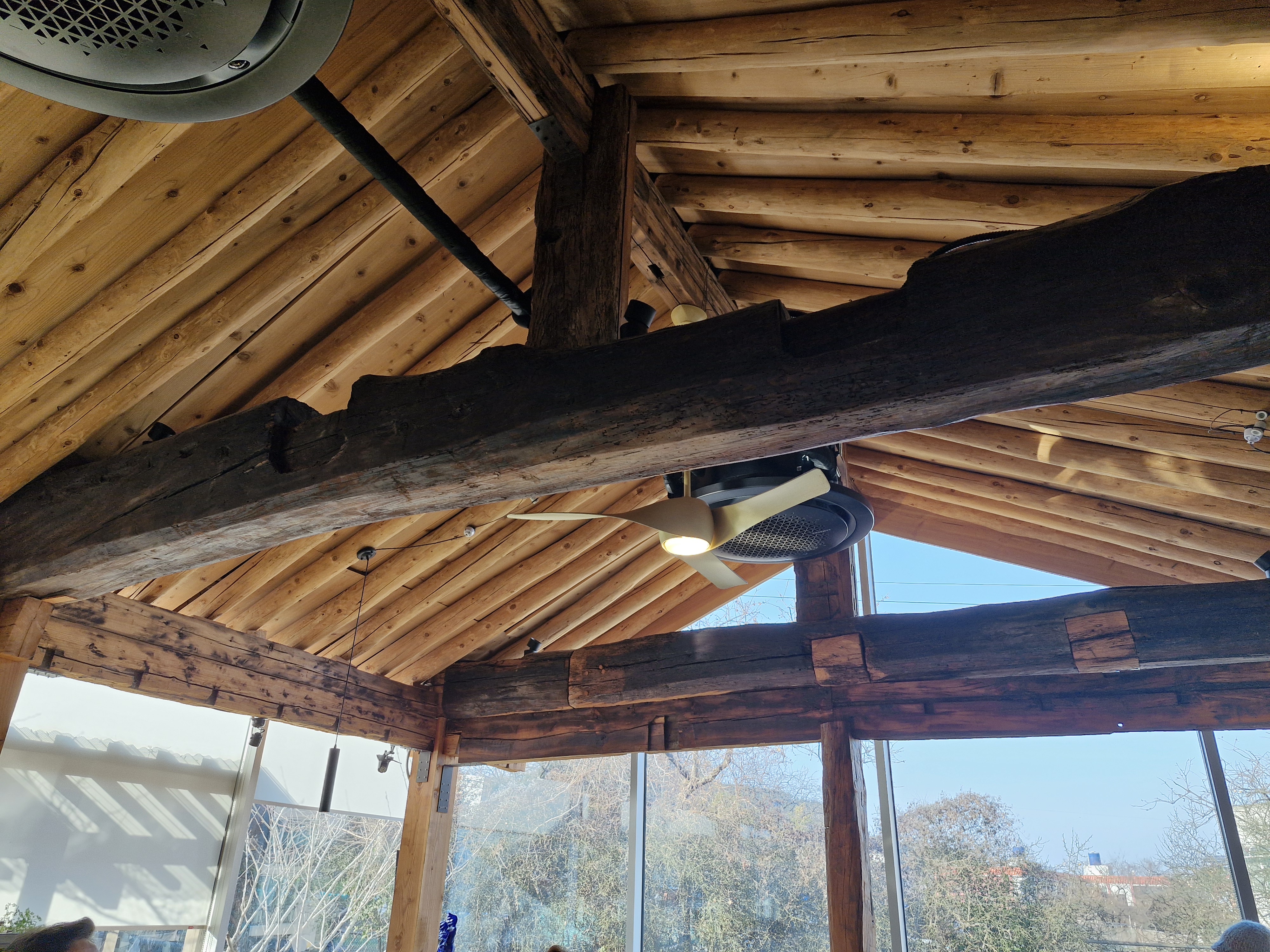 나무를 잘 활용한 천장과 테이블이 차와 잘 어울리는 분위기를 줍니다