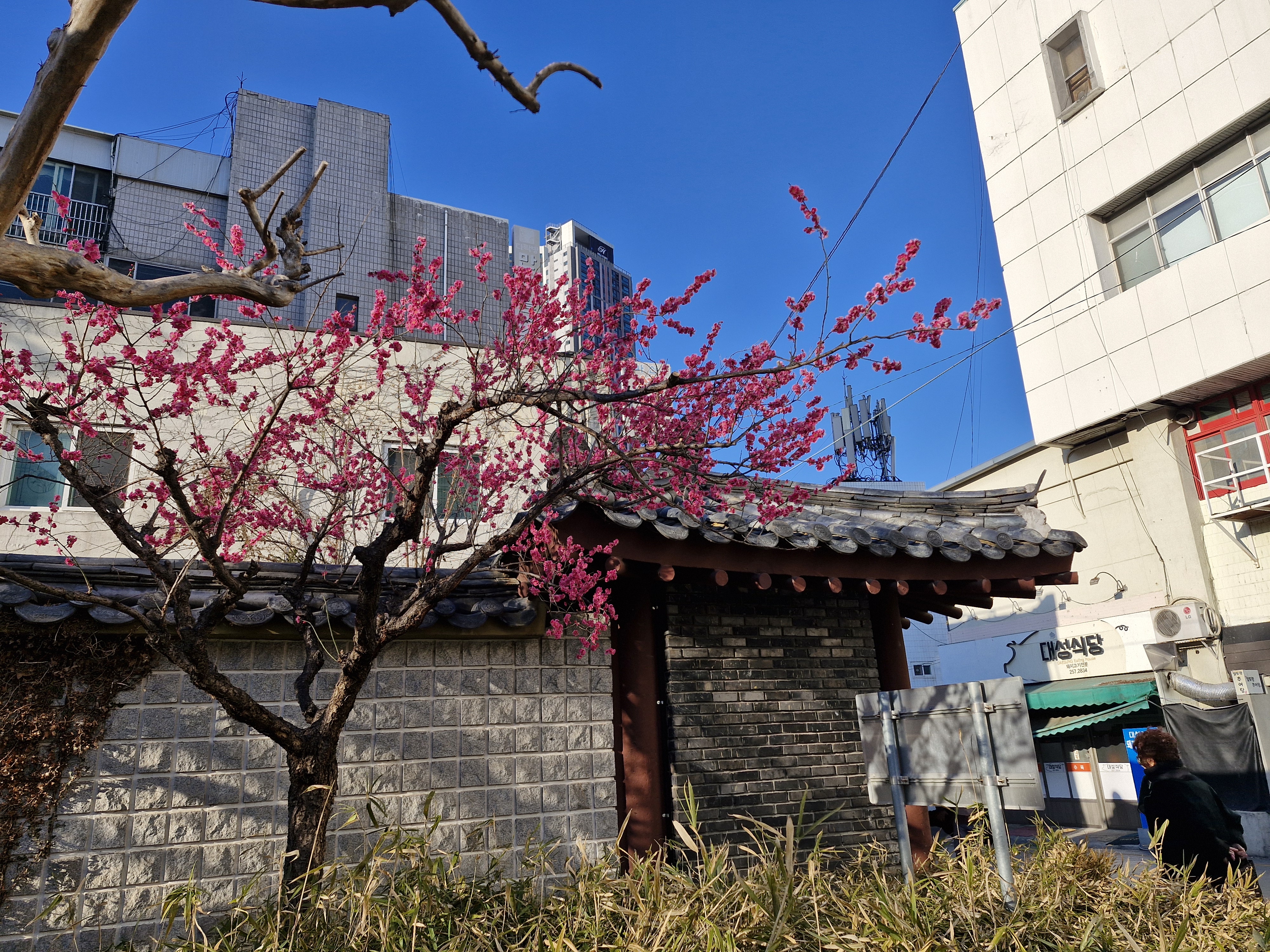우리 일상에서 흔하게 볼 수 있는 홍매화 풍경이라도