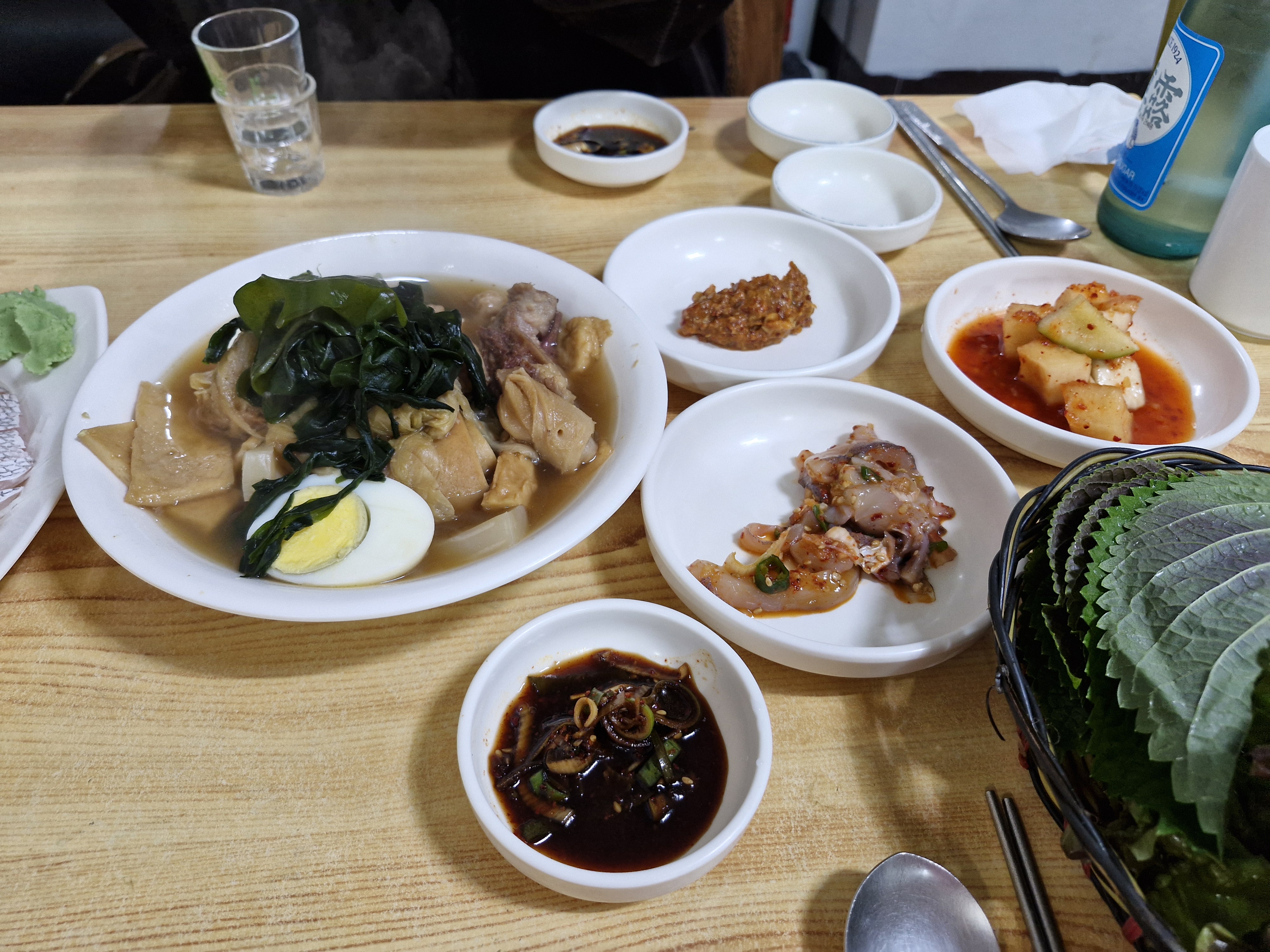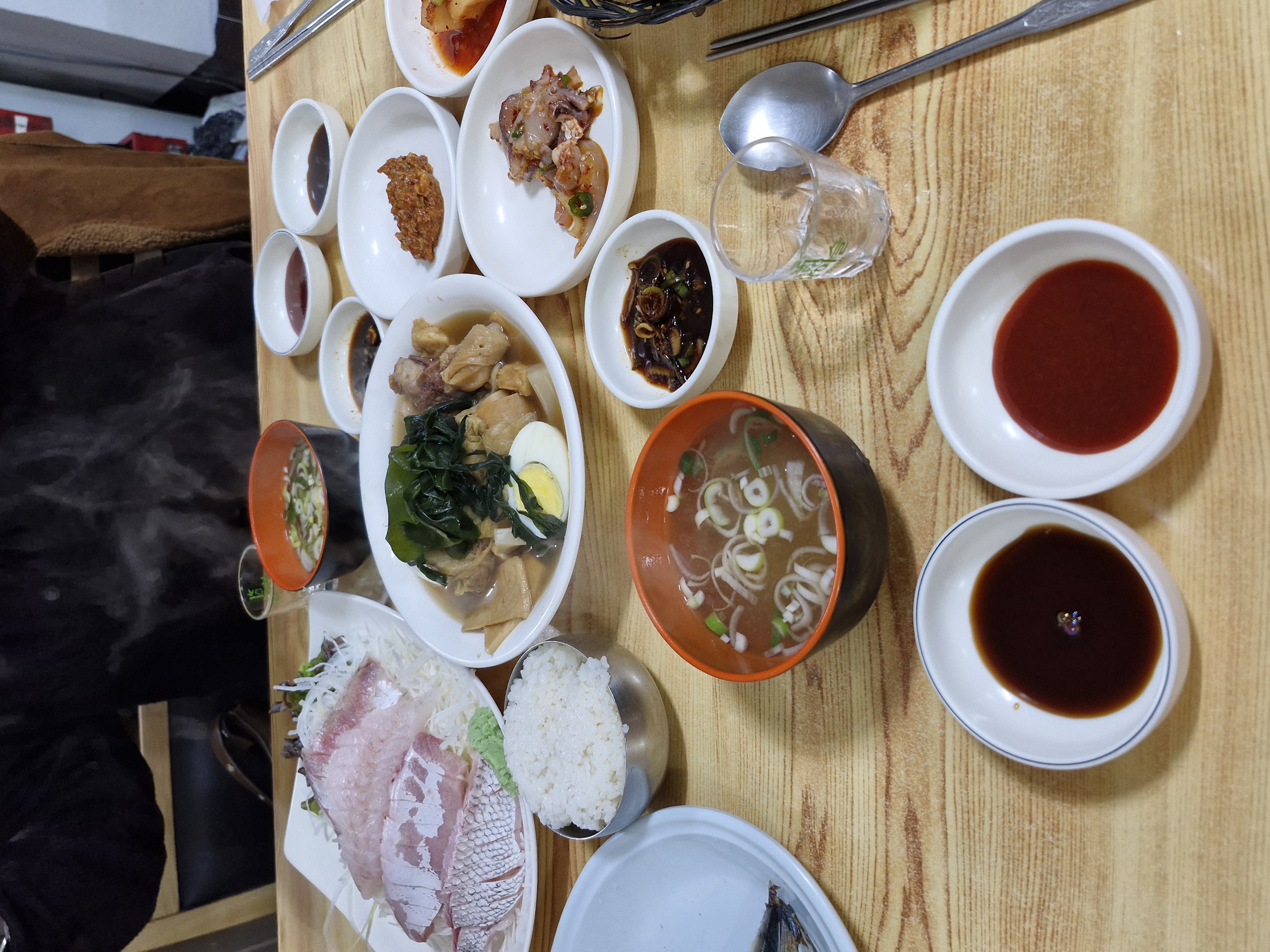 일단 식탁에 초장 간장 수저 등이 있고요