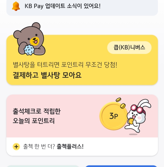 KB페이 출석체크 포인트리 3번 더받기