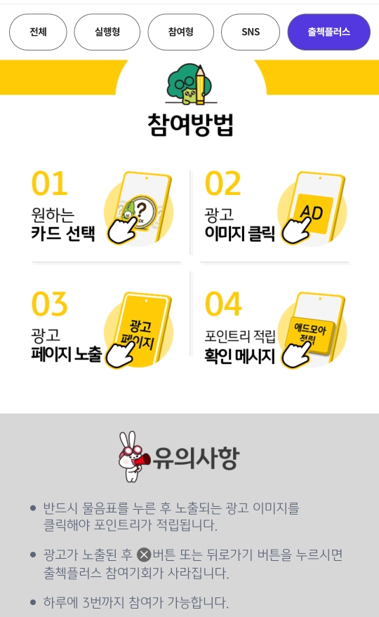 이걸 클릭하면 광고가 보이고, 광고 시청 후 포인트 추가 적립이 됩니다