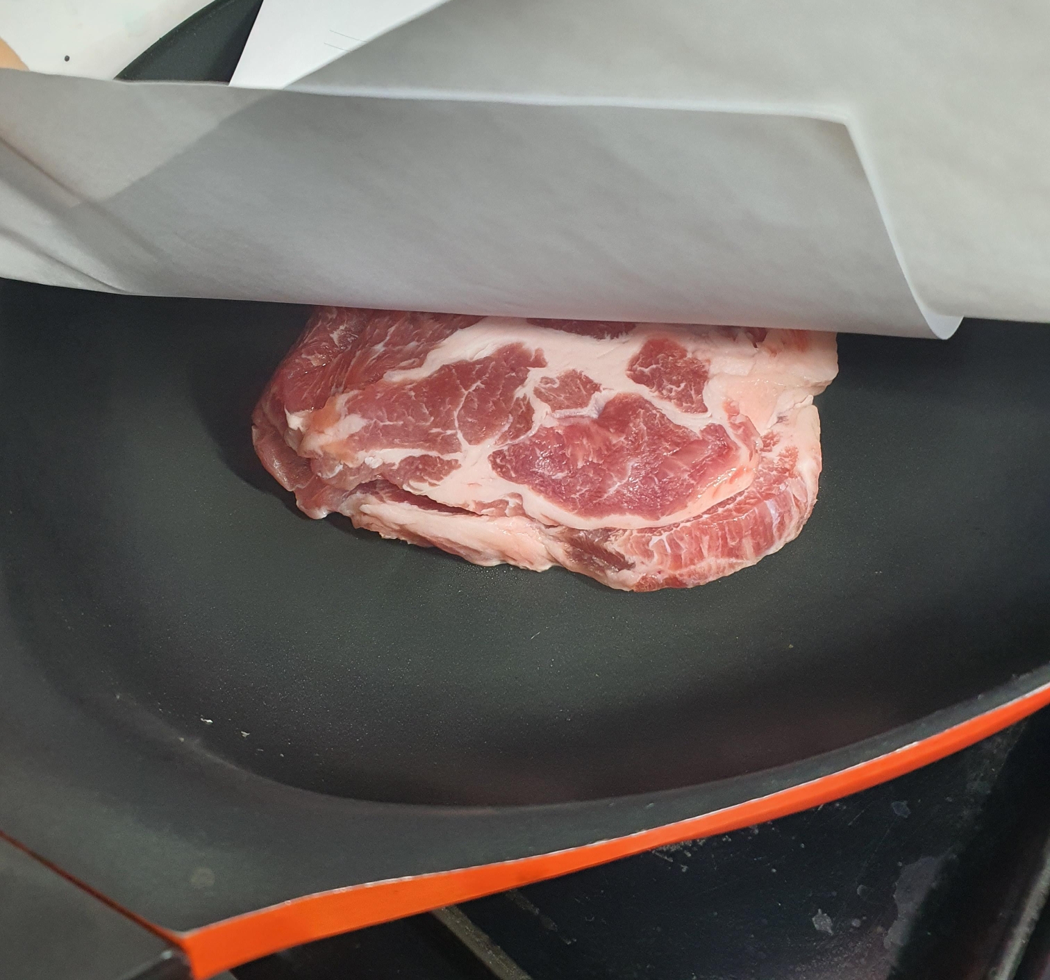 꼭 프라이팬 위에 종이를 덮어 놓습니다