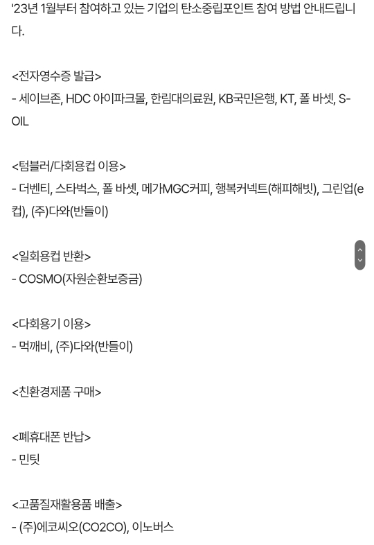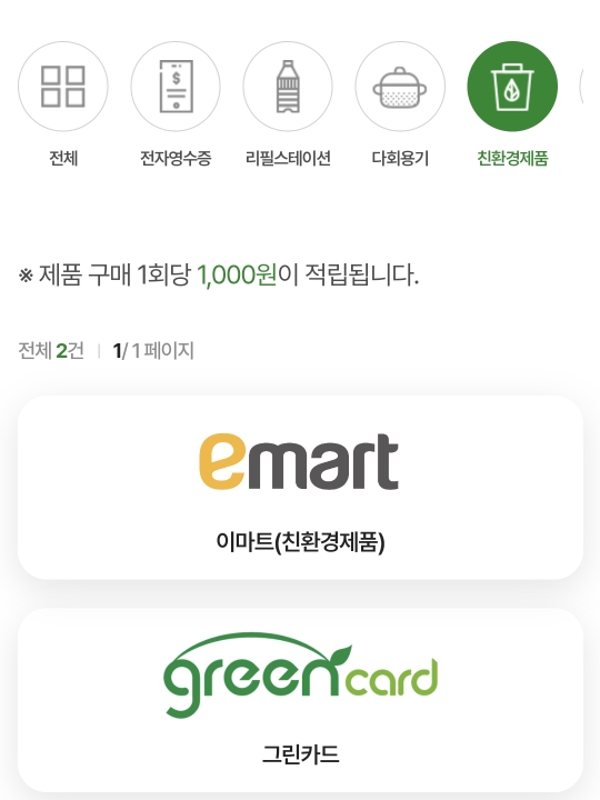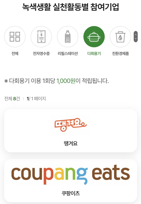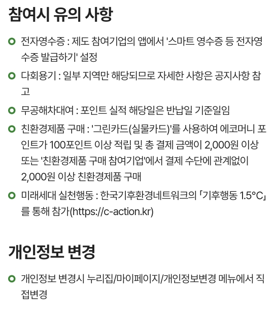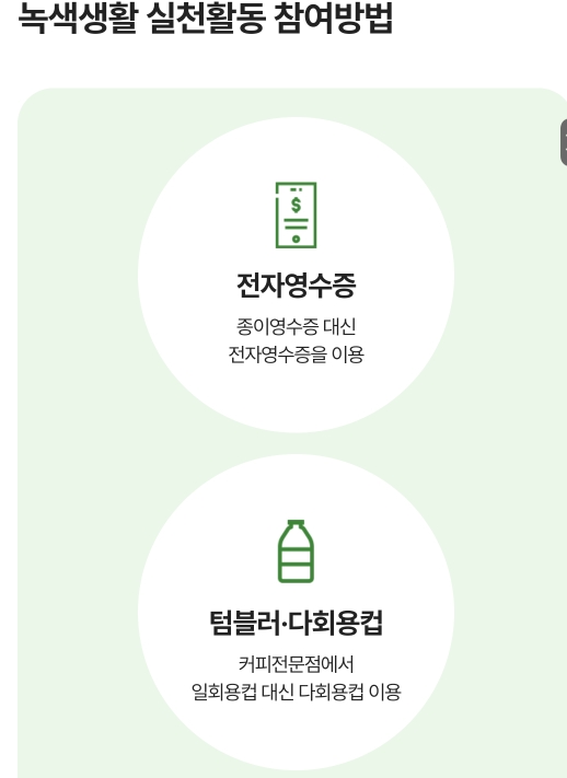 일상에서 종이영수증 안받기/다회용기쓰기 등의 실천으로 포인트를 모을 수 있는 제도