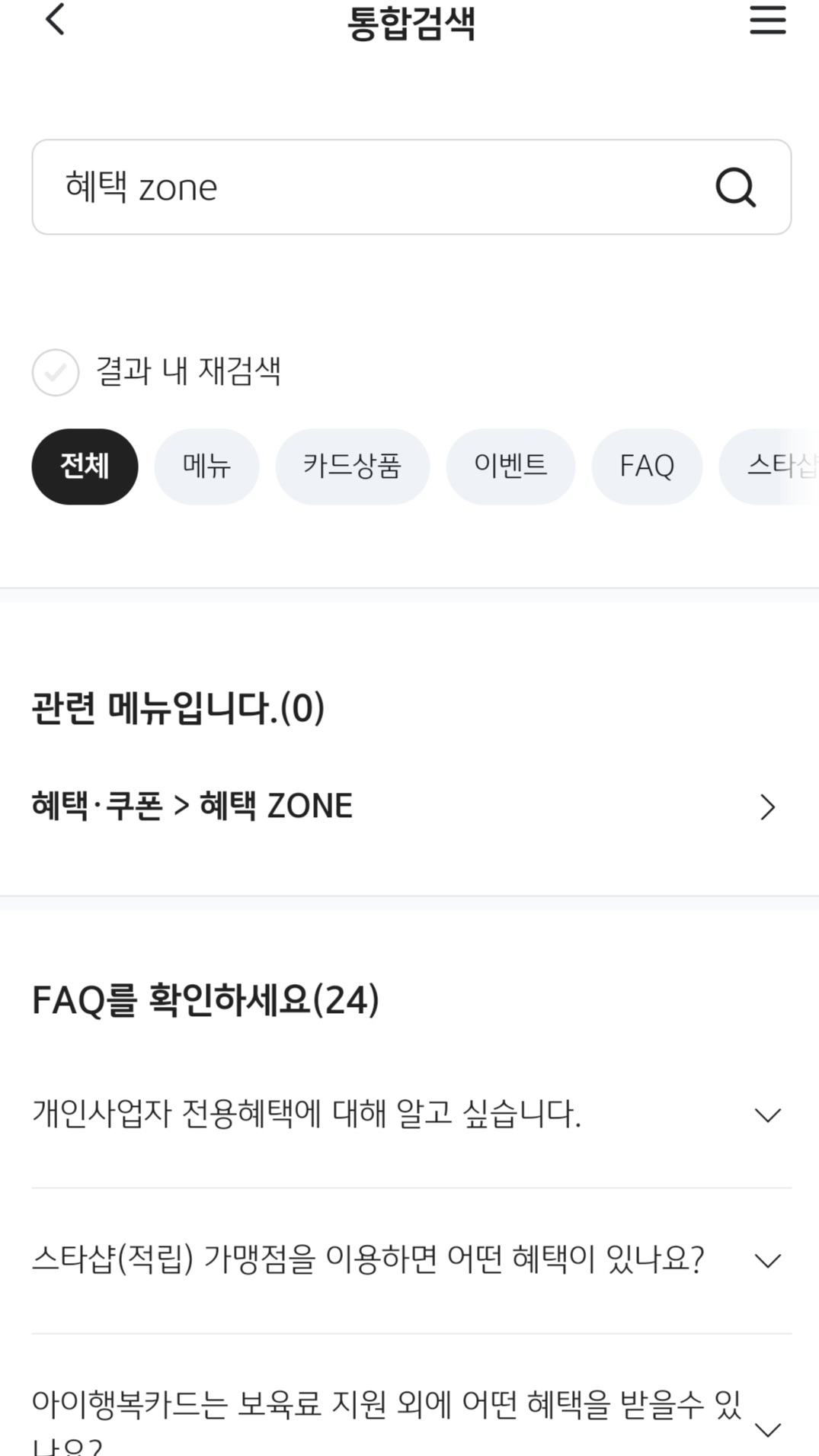 여기서 혜택이라고 검색하면 바로 혜택zone 접속 버튼이 떠요