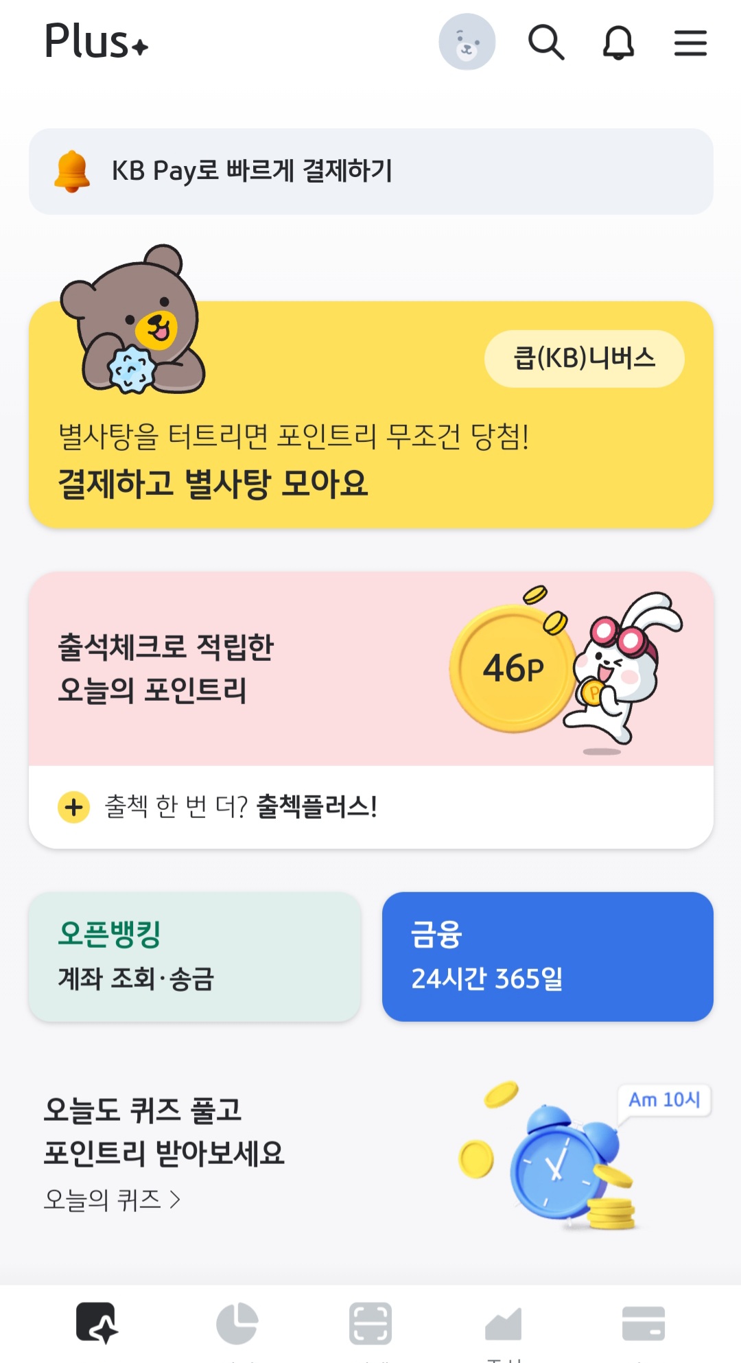 | kb스타뱅킹 앱테크: 출석체크, 수요퀴즈, 만보기/포인트리 모으기추 (0) | 2023.04.23 |