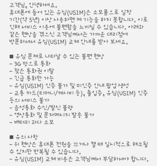 사용한 지 오래된 유심칩은 바꿔주세요