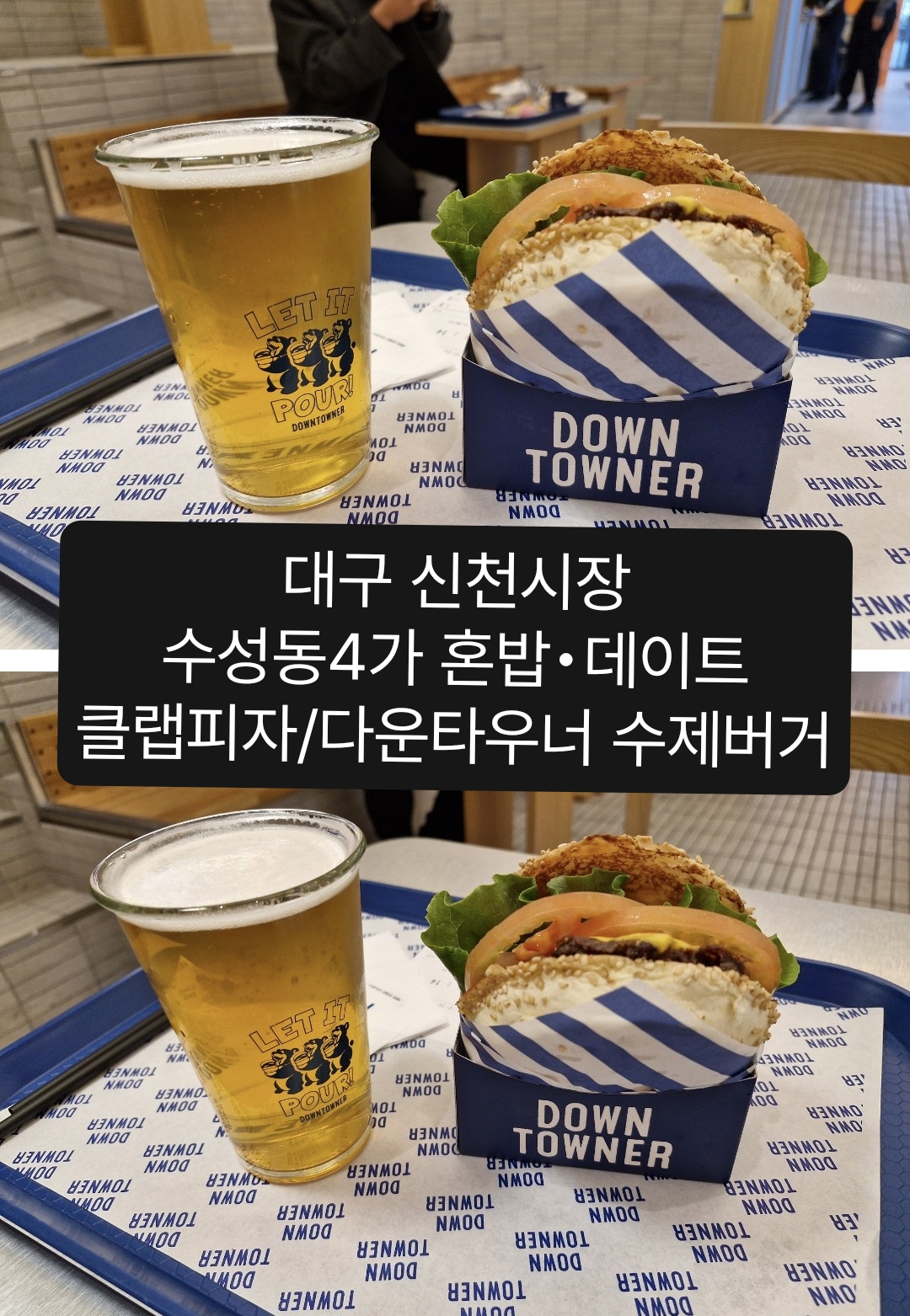 대구 신천시장 인근 수성4가동은 윤옥연 할매떡볶이 본점 등 맛집이 엄청 많은 곳입니다https://liveforeating.tistory.com/m/653 이곳에 혼밥하기 좋은 피자, 수제버거 전문점인 다운타우너/클랩피자룰 추천해 드립니다내돈내산 리뷰입니다📍 신천시장 혼밥추천, 수성4가 다운타우너/클랩피자 대구빌리브헤리티지_위치 주차 클랩피자와 다운타우너 수제버거는 대구 신천시장 인근 빌리브헤리티지 상가에 있는데요같은 상가 안에 있지만 두 개의 상점이 있는 특이한 형태입니다주차는 인근 도유수성 주차장 이용해 주시고요3만원 이상 구매하면 1시간 무료 주차 가능합니다📍 신천시장 혼밥추천, 수성4가 다운타우너/클랩피자 대구빌리브헤리티지_내부 모습클랩피자와 다운타우너 수제버거는 신천시장 혼밥/데이트하기..