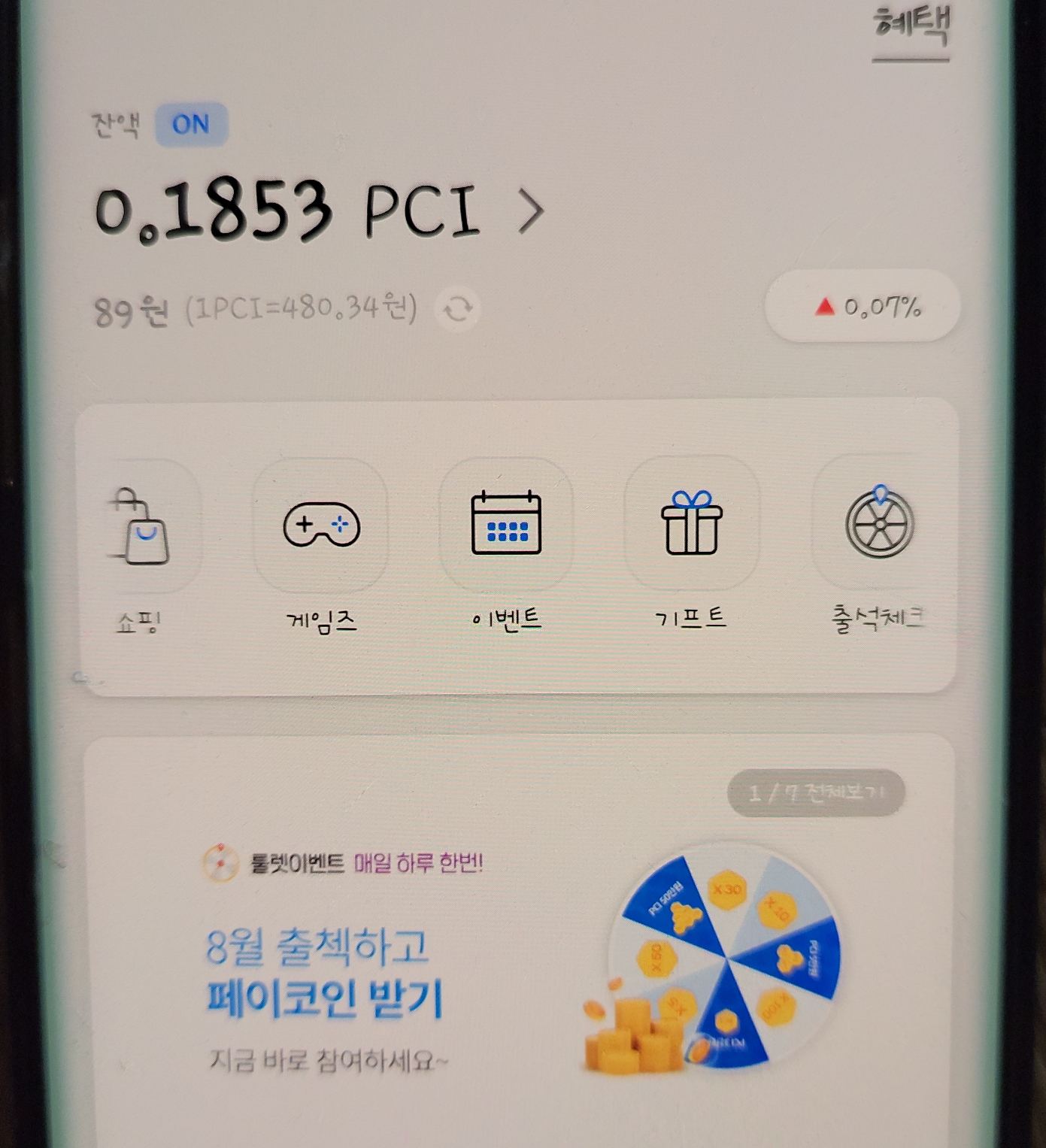 저는 최근 출석체크로 10PCI정도를 보유했는데