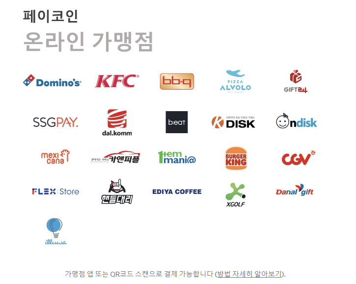 또 페이코인은 여러 가맹점과 제휴도 맺고 있습니다