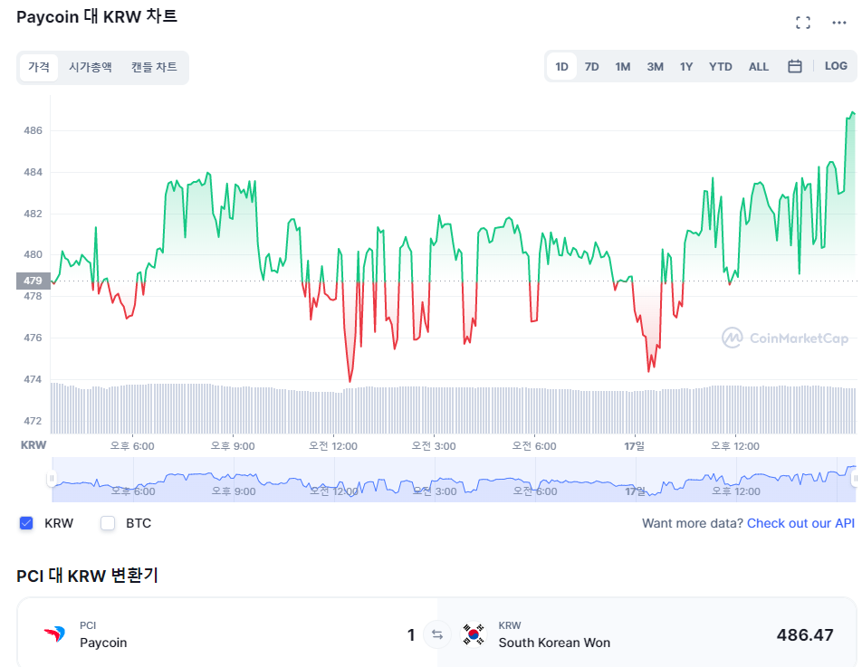페이코인도 덩달아 오르는 모양새입니다
