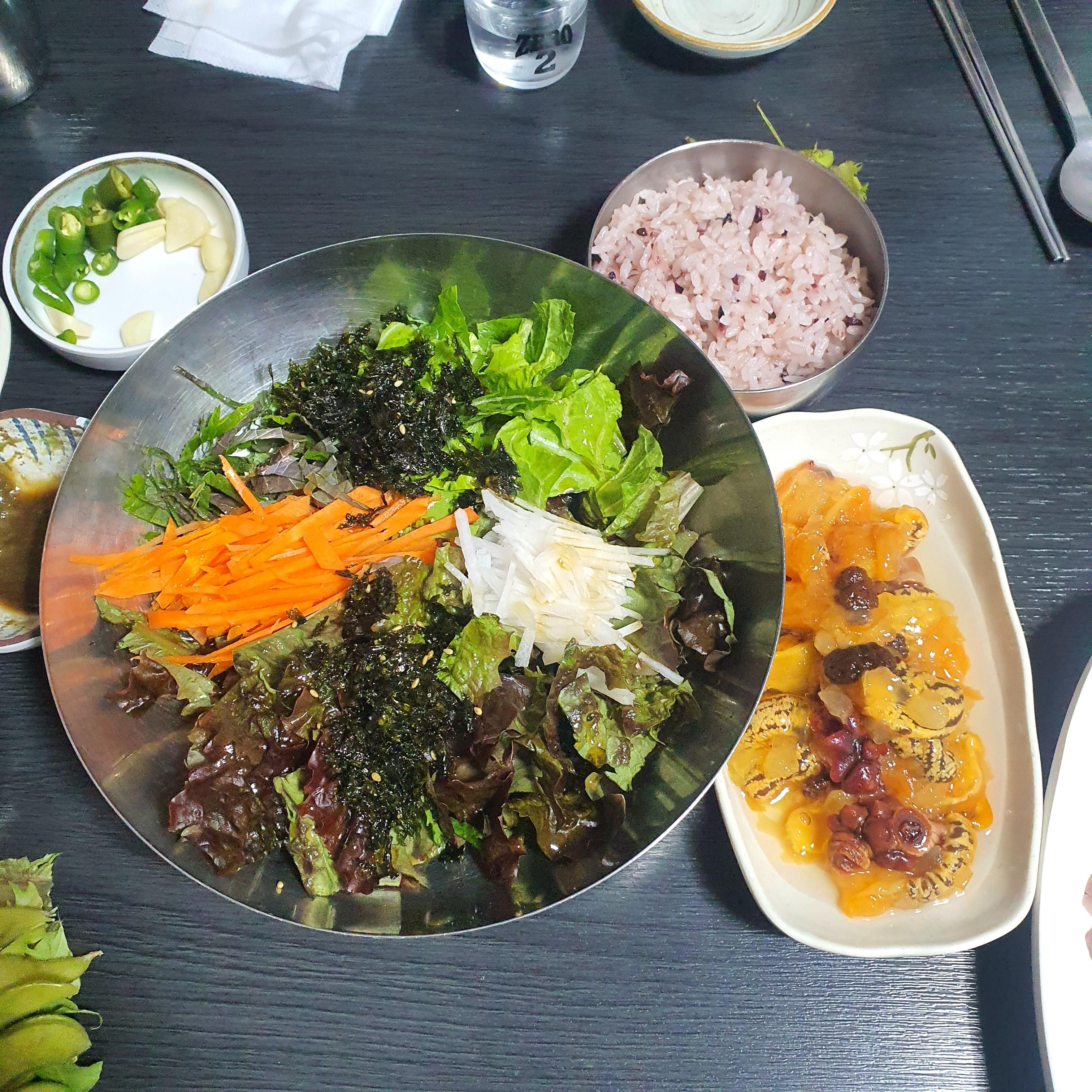 여기도 채소 듬뿍이고 멍게는 접시에 따로 듬뿍 담아주시네요