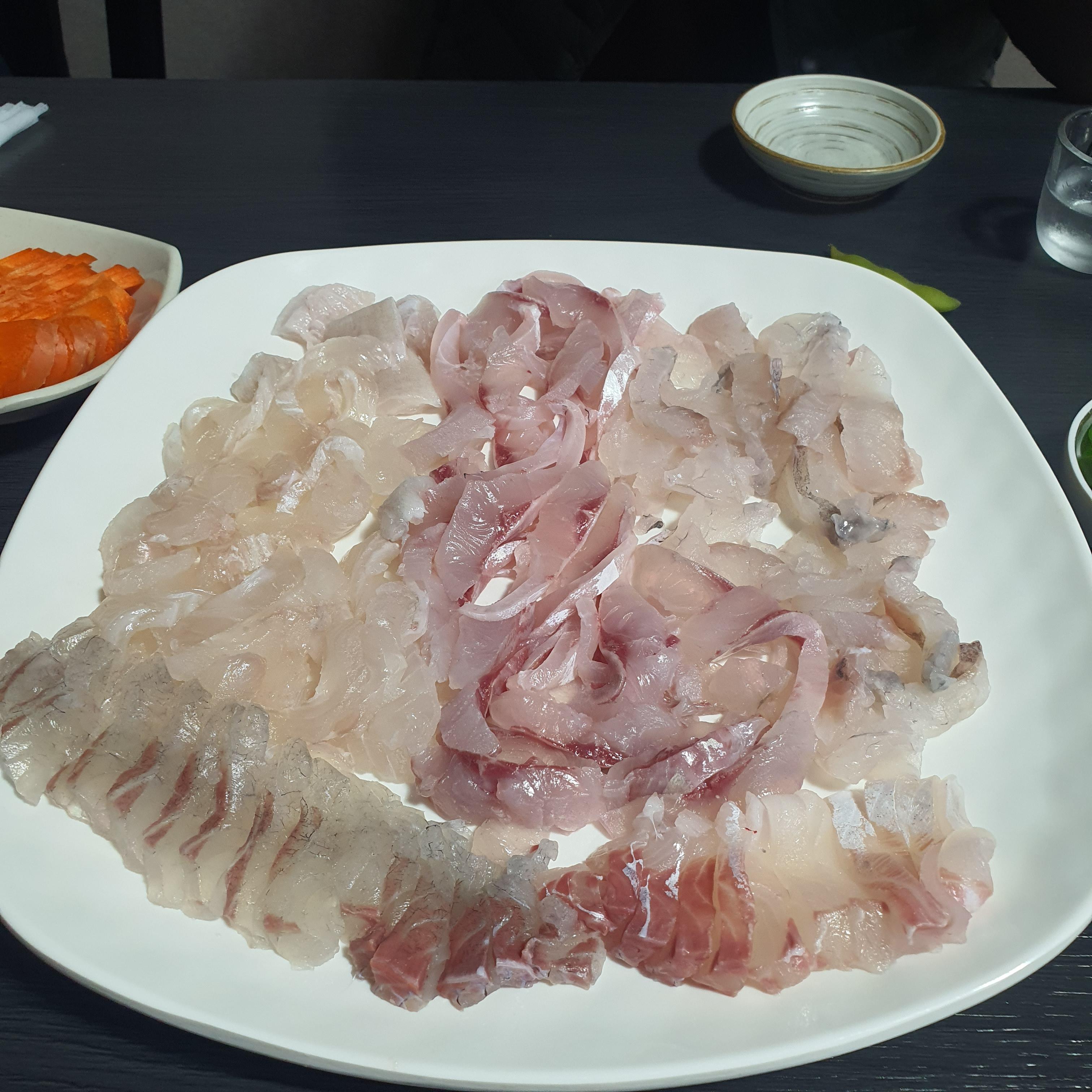 여기 회 비주얼이 다른 가게들과 비교했을때 무언가가 완전 특출나다, 특이하다 이런 느낌은 아닌데요