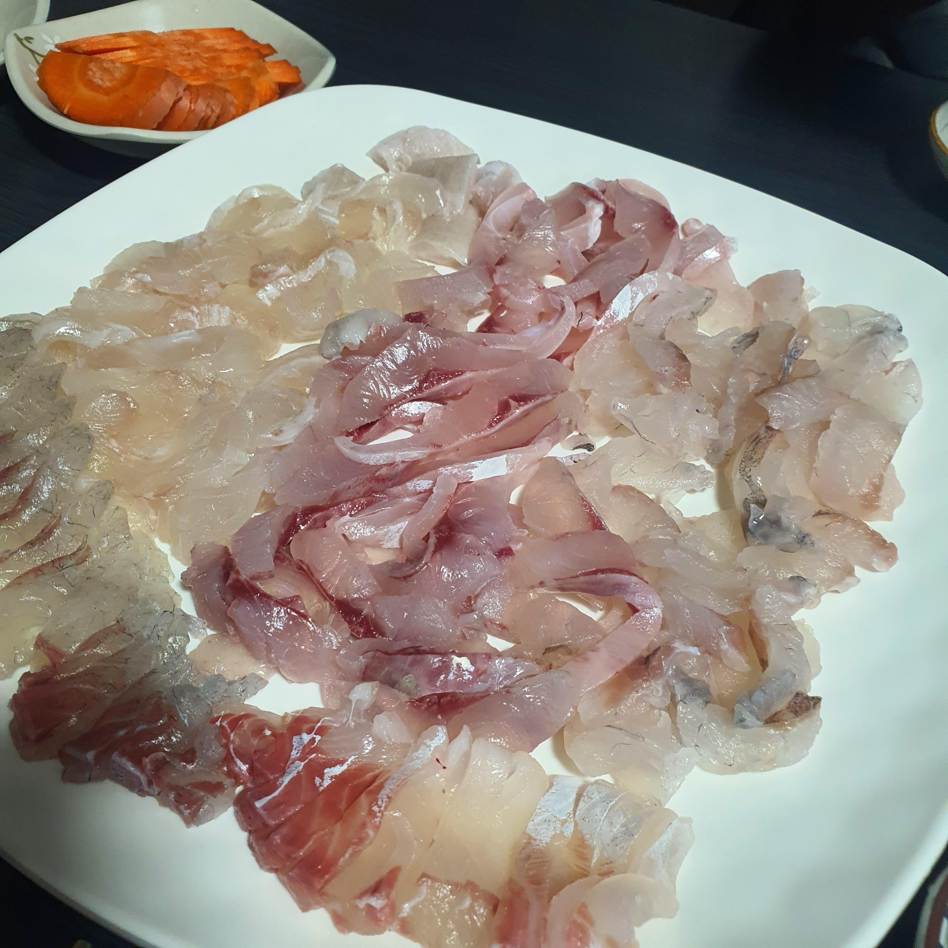 이날 먹은 건 밀치 등이 섞인 모듬회인데요