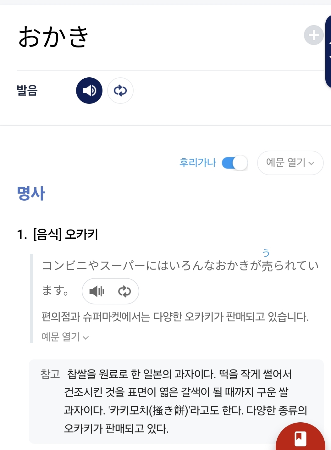 설명에서 말하는 오카키라는 것이 센베 같은 쌀과자를 뜻하는 듯하네요