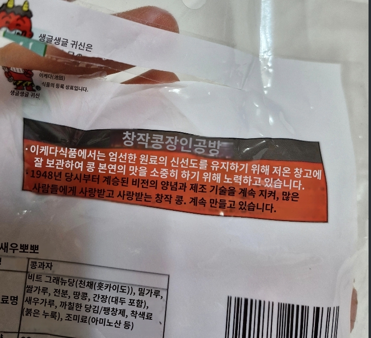 저는 쳐음에 새빨간 과자 색깔 때문에 게 등 해산물이 들어간 짭짤한 과자인 줄 알았습니다