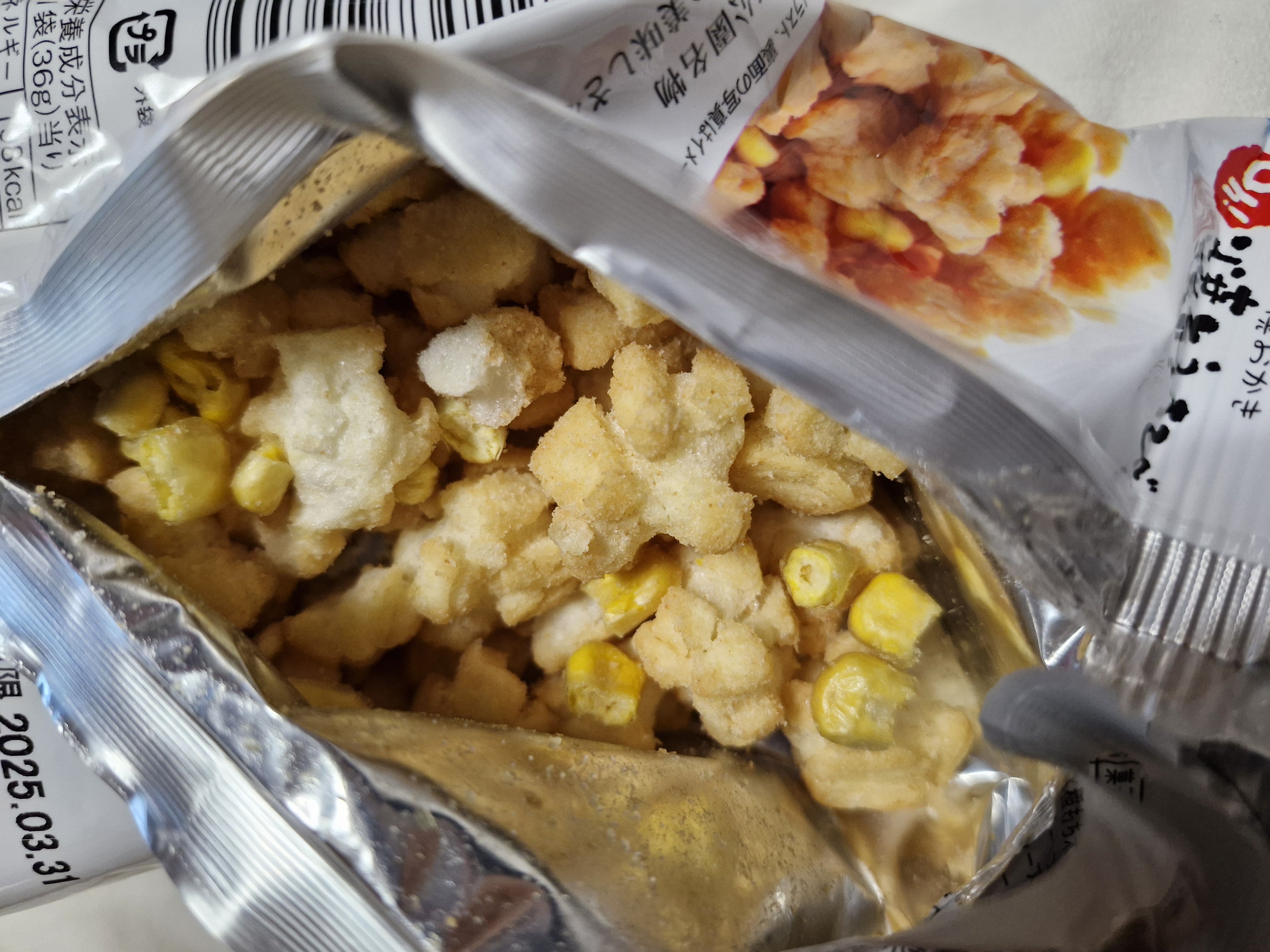 팝콘의 부드러움과 쌀과자의 바삭함 딱 그 중간의 맛인데요