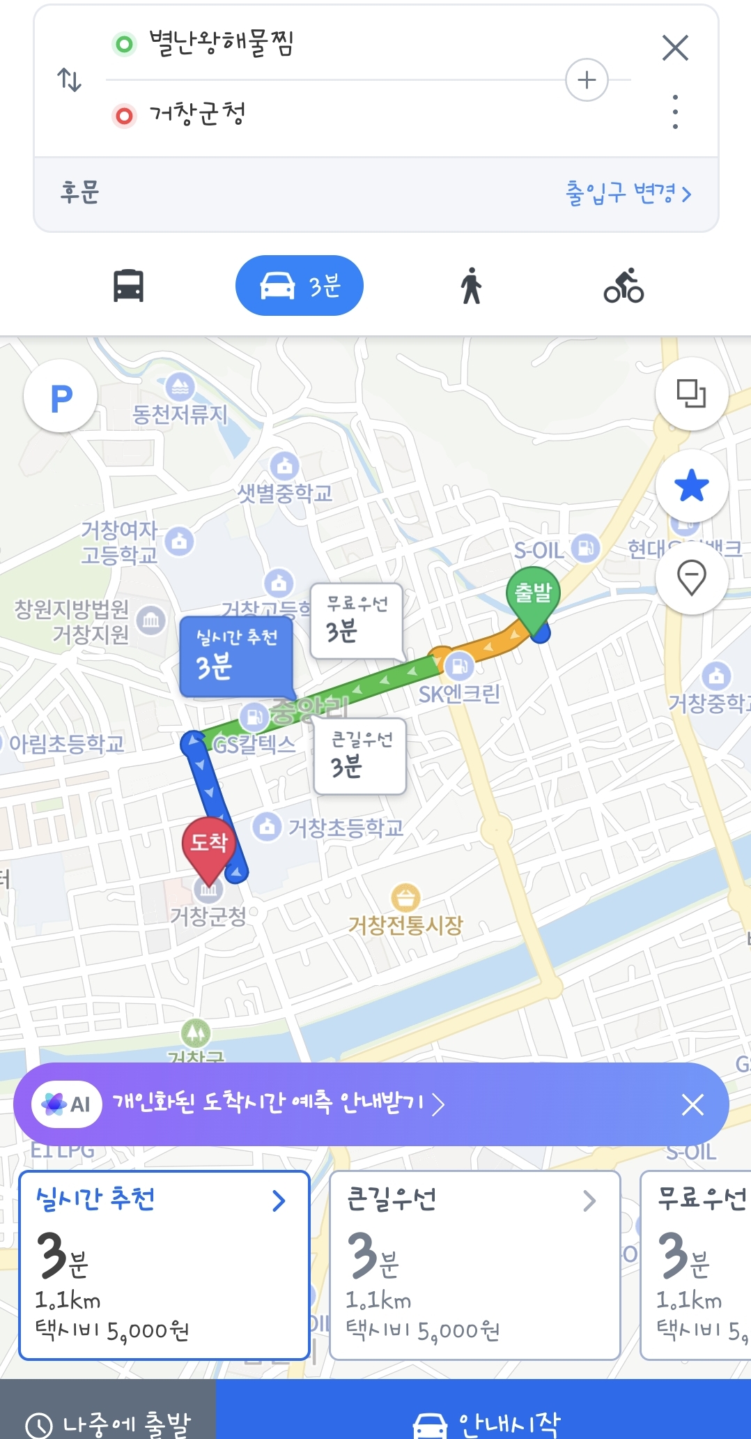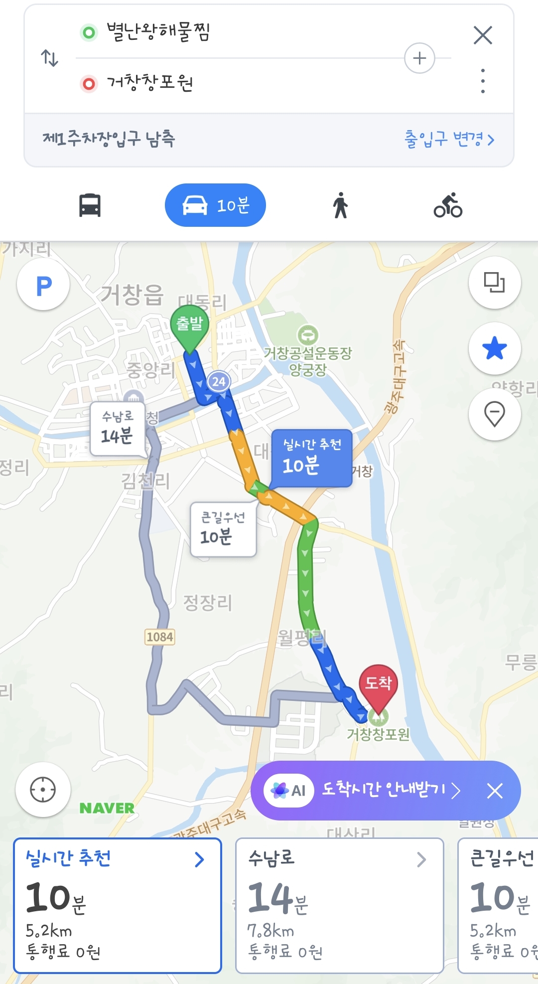 차량 이동 기준, 창포원에서 차로 10분 / 거창군청, 거창시외버스터미널, 거창시장에서 차로 3분입니다