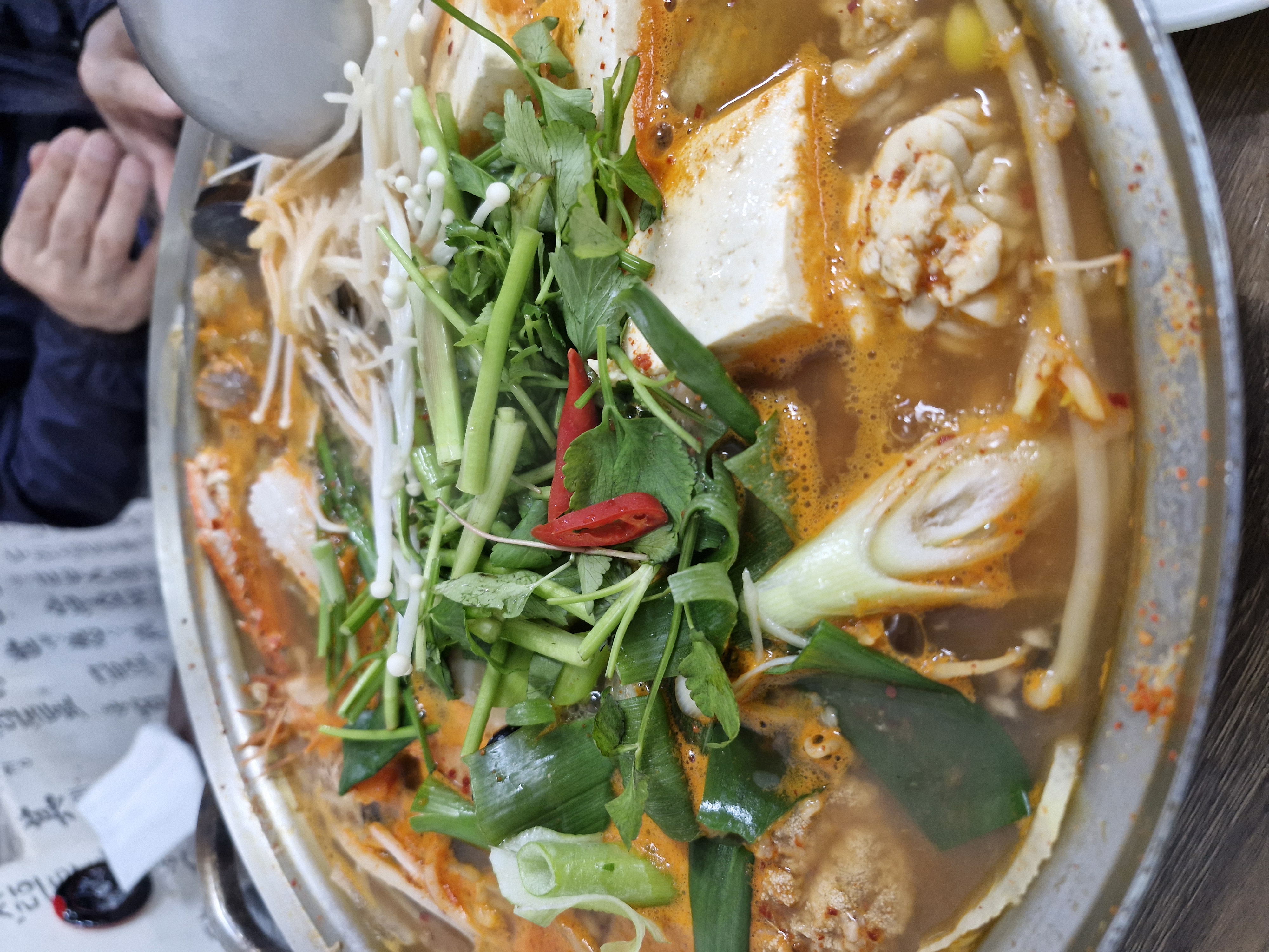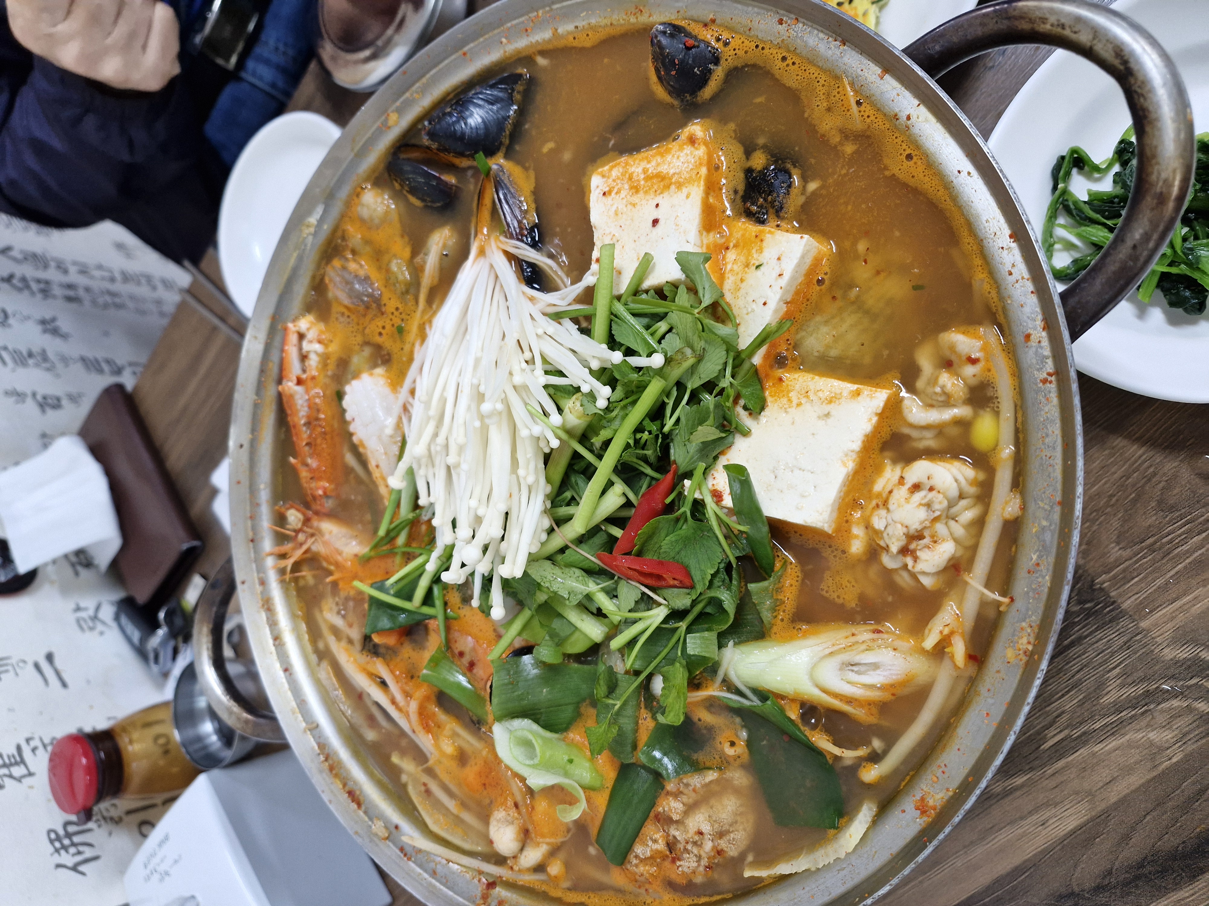 낙지, 홍합, 게, 새우, 전복 등 해물은 물론 두부와 콩나물도 넉넉히 들어가서 한끼 식사로 손색이 없었어요