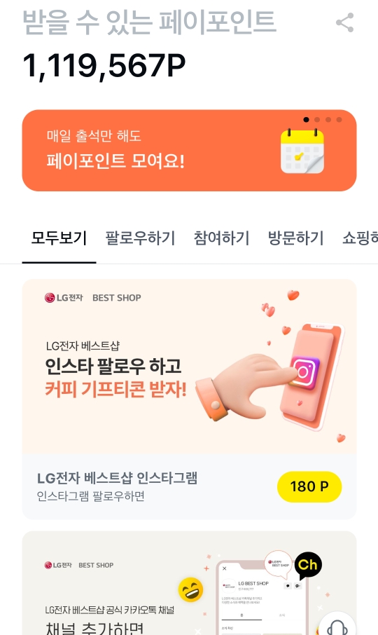 퀴즈, 구독, 클릭하기 등 여러 참여 활동으로 페이포인트를 모을 수 있어요