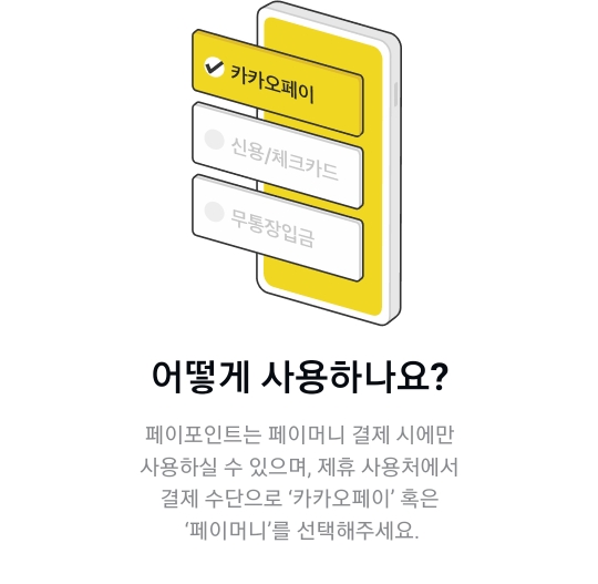 카카오페이의 다양한 결제서비스를 이용할 때 다방면으로 활용 가능합니다